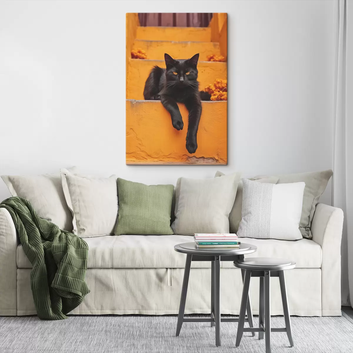 Maalid Must kass lamab kollastel treppidel Nr s40798