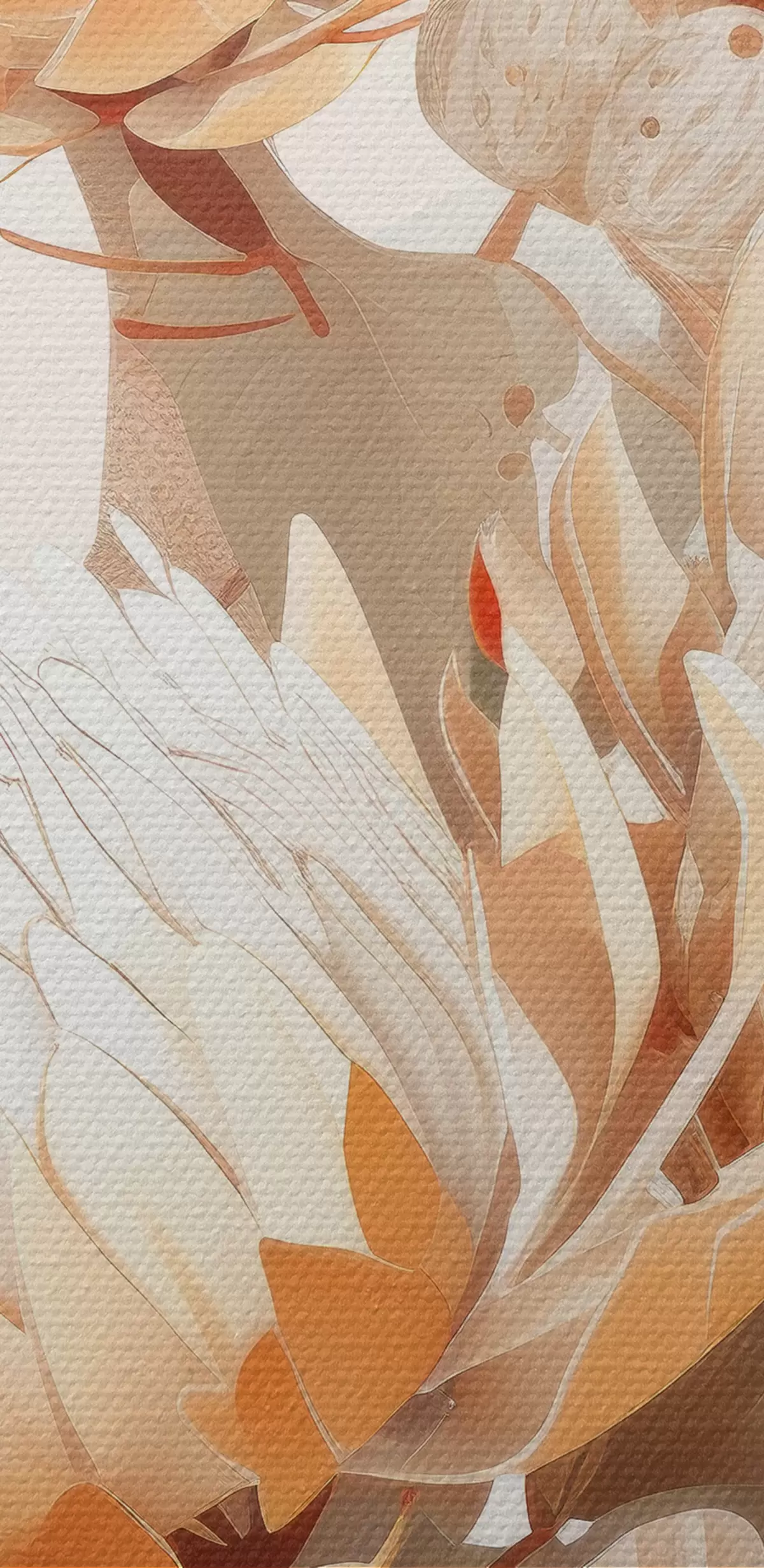 Maalid Ilusad protea lilled koos liblikaga, pehmed beežid värvid, puuvillased Nr s40816