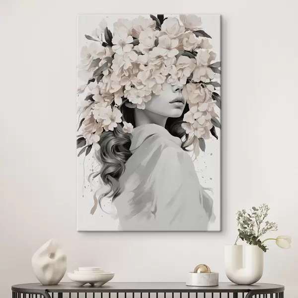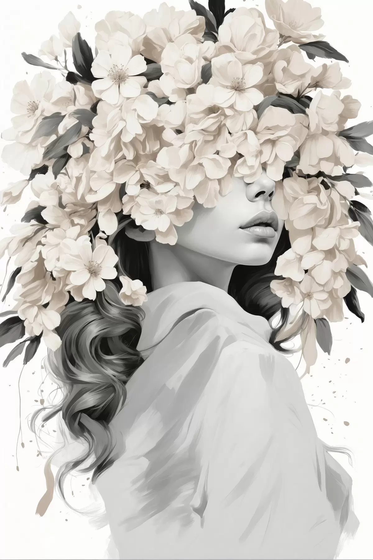 Maalid Tüdruk lilledega tema nägu musta ja valge värvi Nr s40849