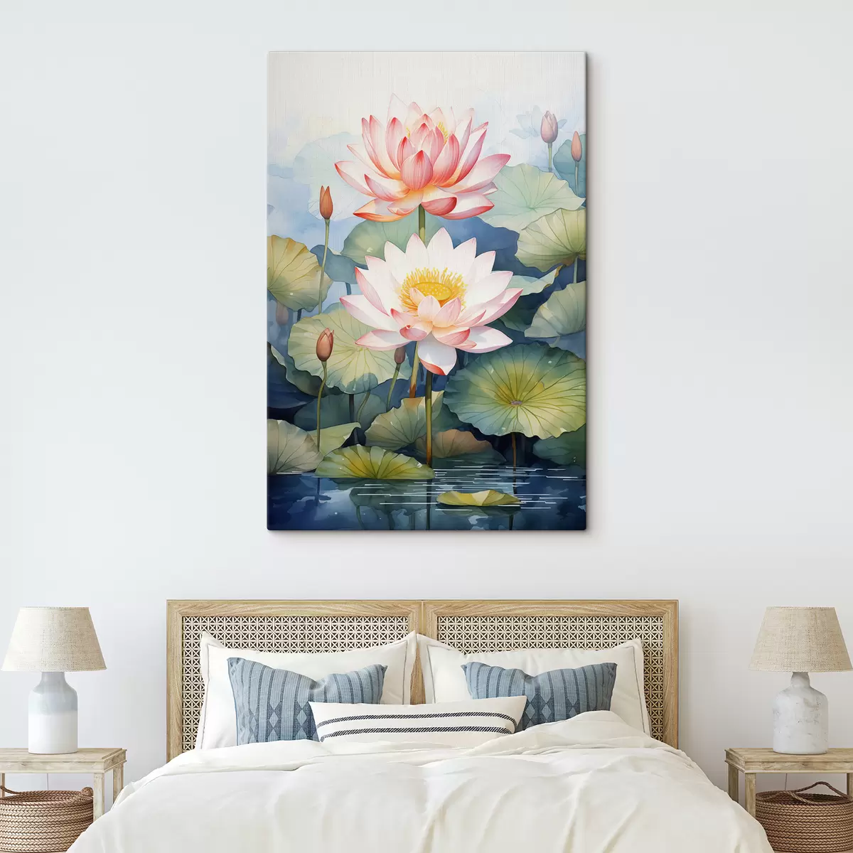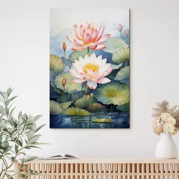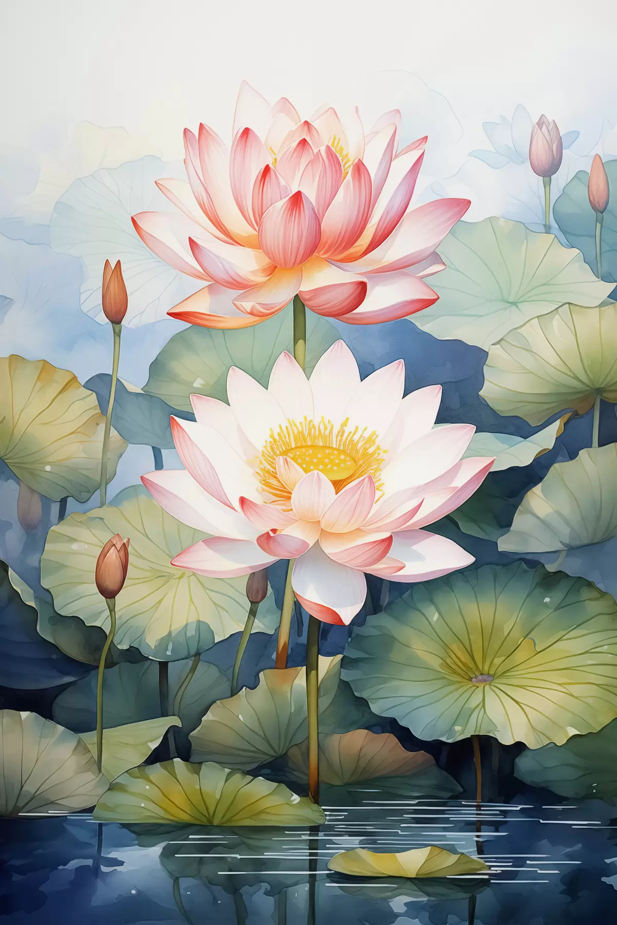 Maalid Vesilillede lilled tiigis akvarellina Nr s40888