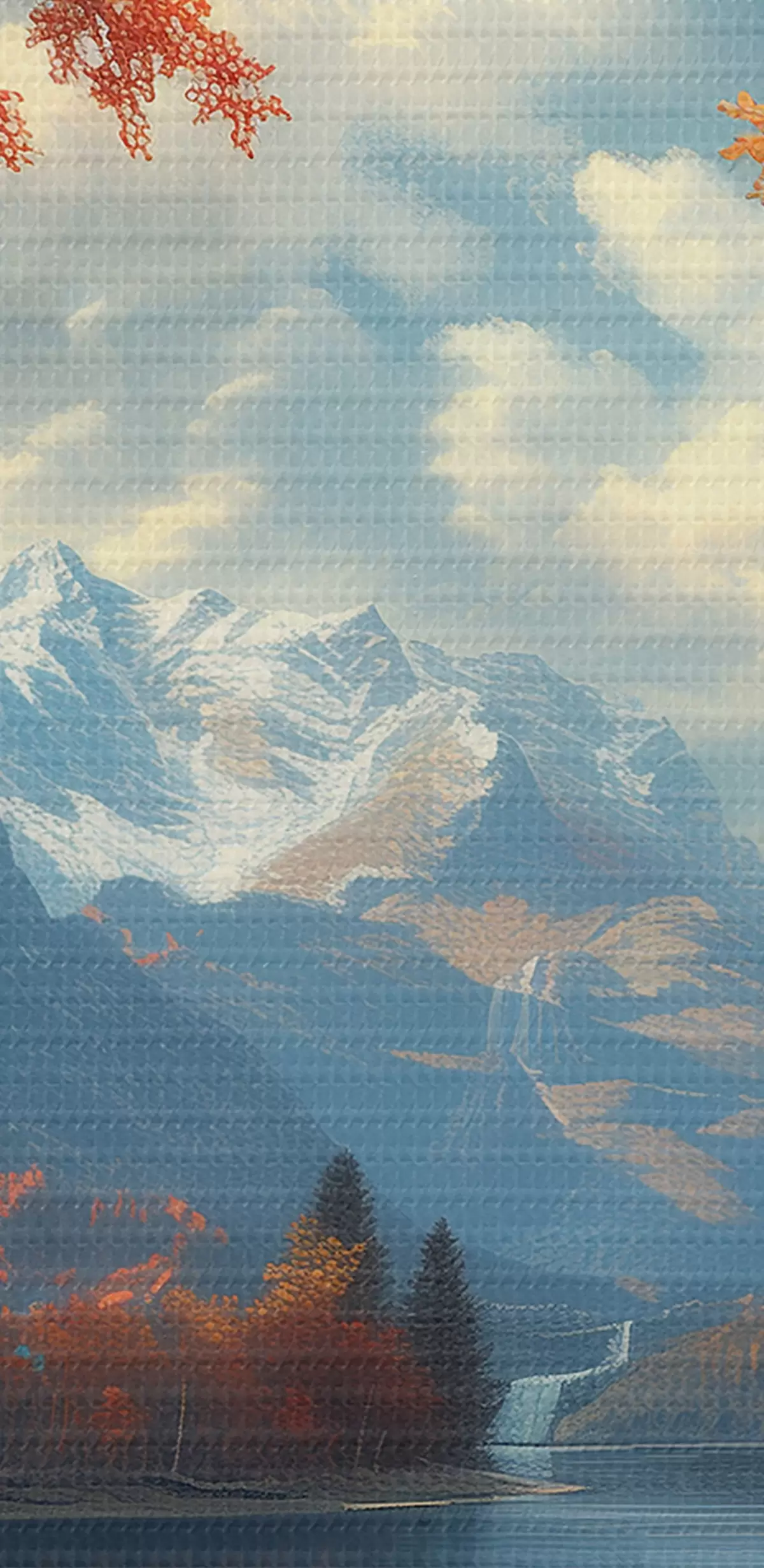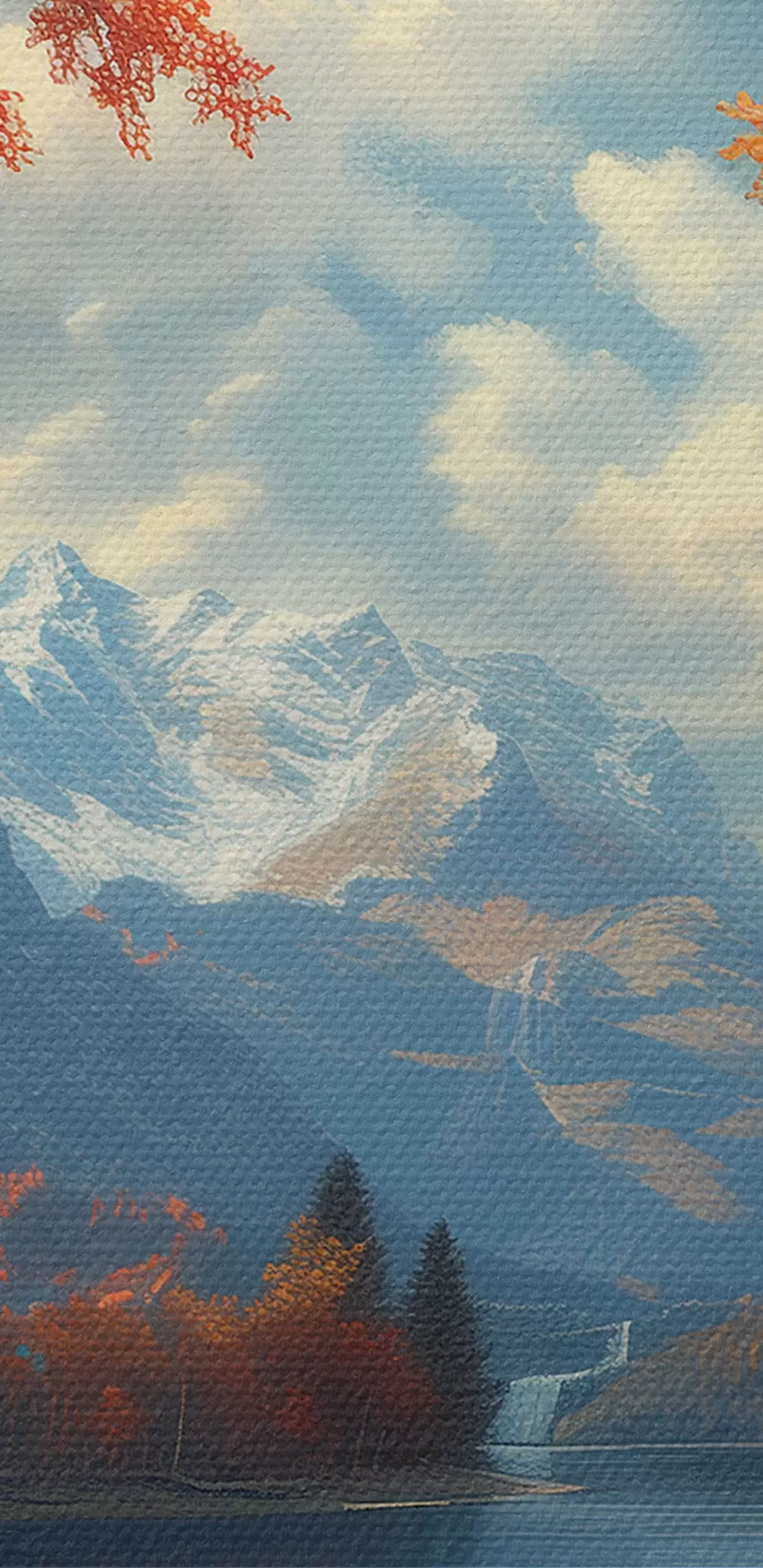 Maalid Sügisene maastik mägede taustal tiigi ääres Nr s40903