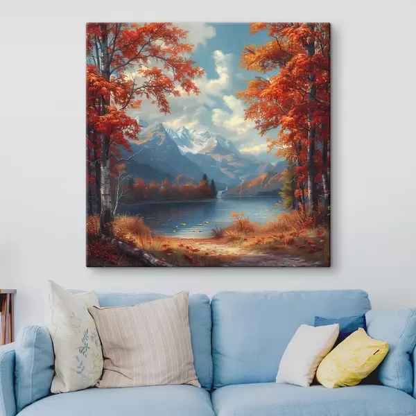 Maalid Sügisene maastik mägede taustal tiigi ääres Nr s40903