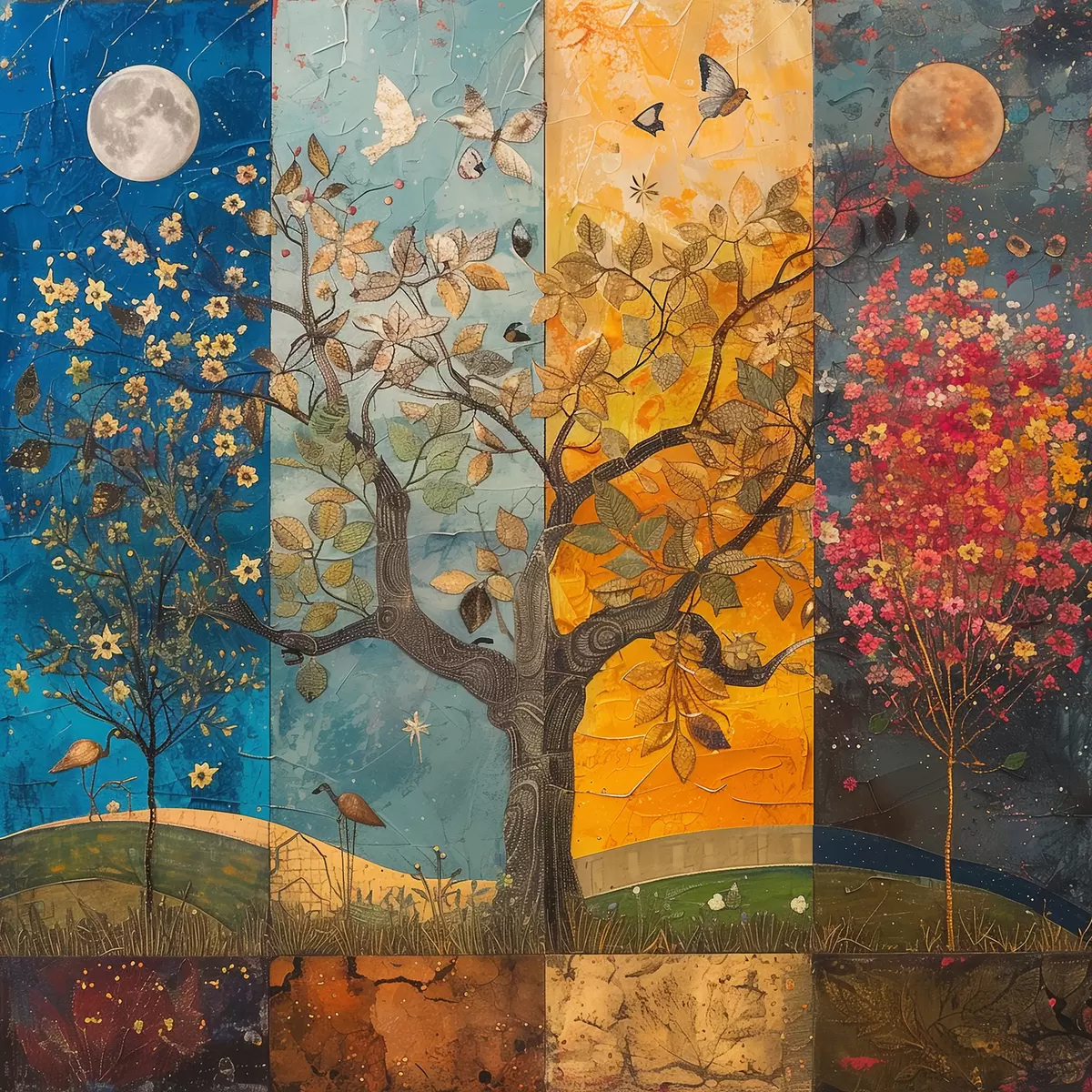 Maalid Akvarellkollaaž aastaajad Nr s40921