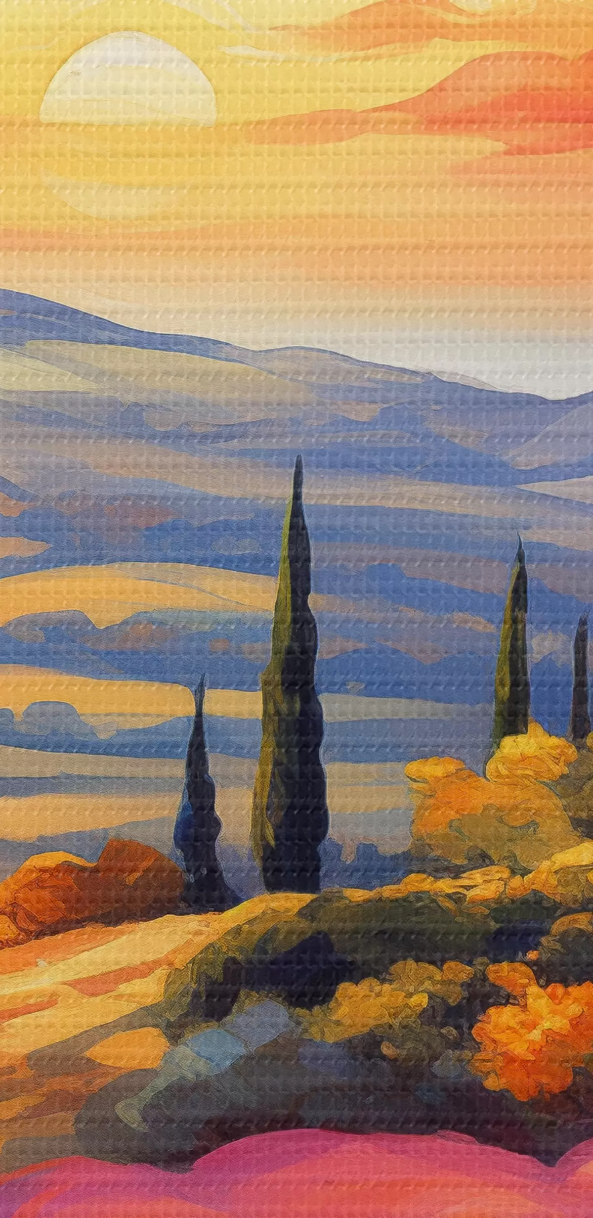 Selle lõuendi peenike niidipunus meenutab professionaalse kunstniku lõuendi pinda.