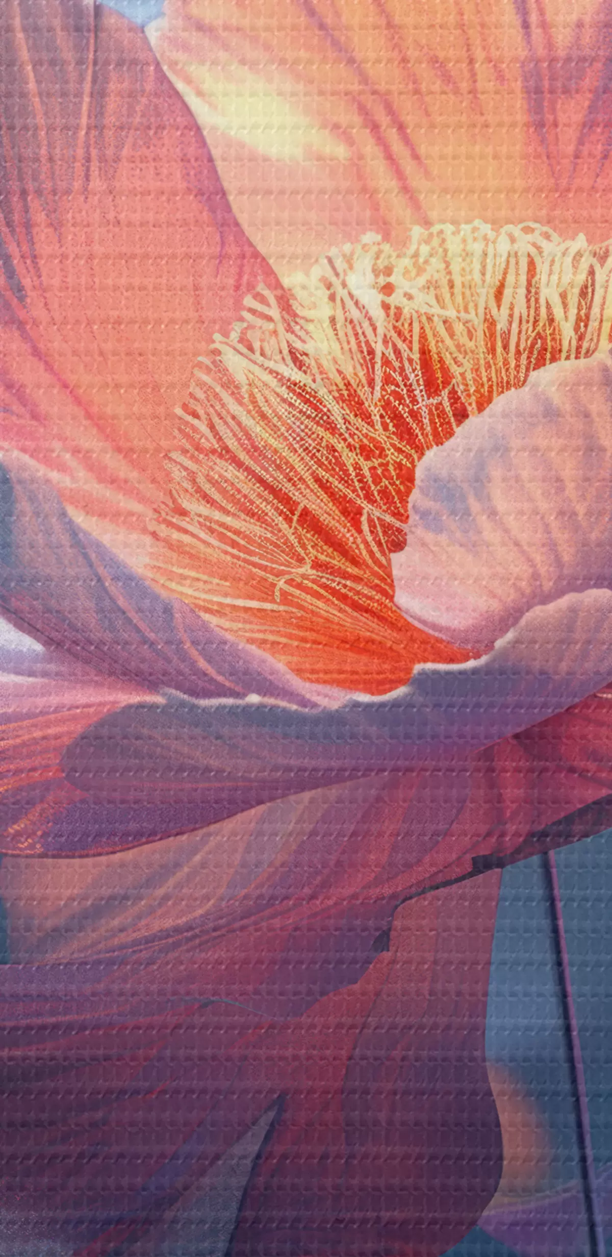 Selle lõuendi peenike niidipunus meenutab professionaalse kunstniku lõuendi pinda.