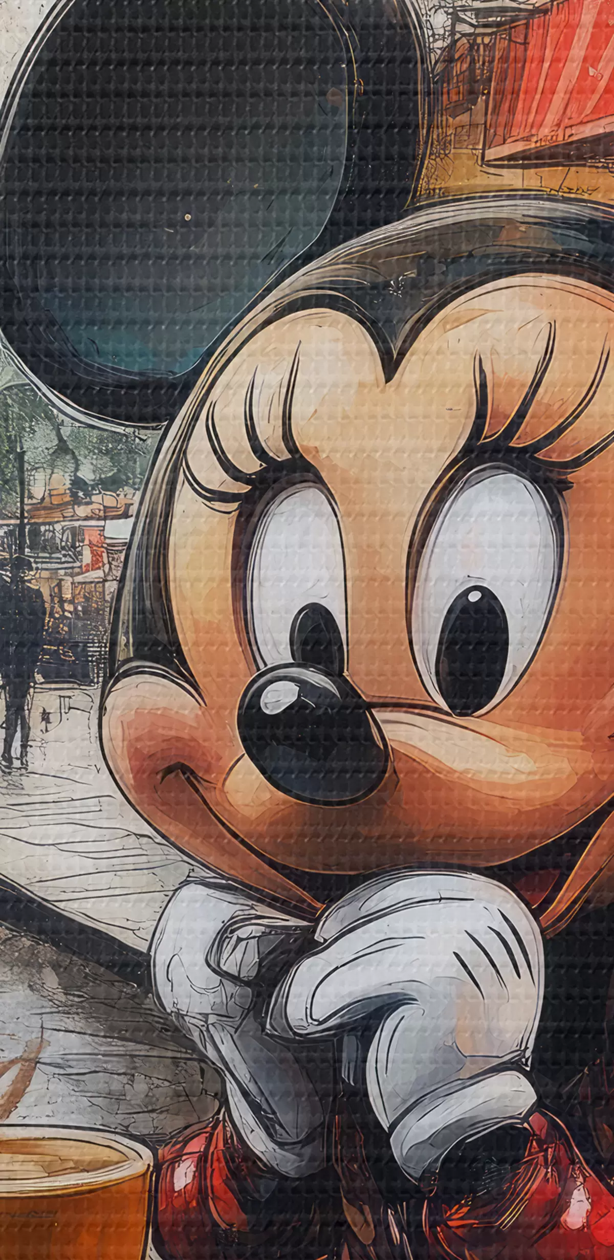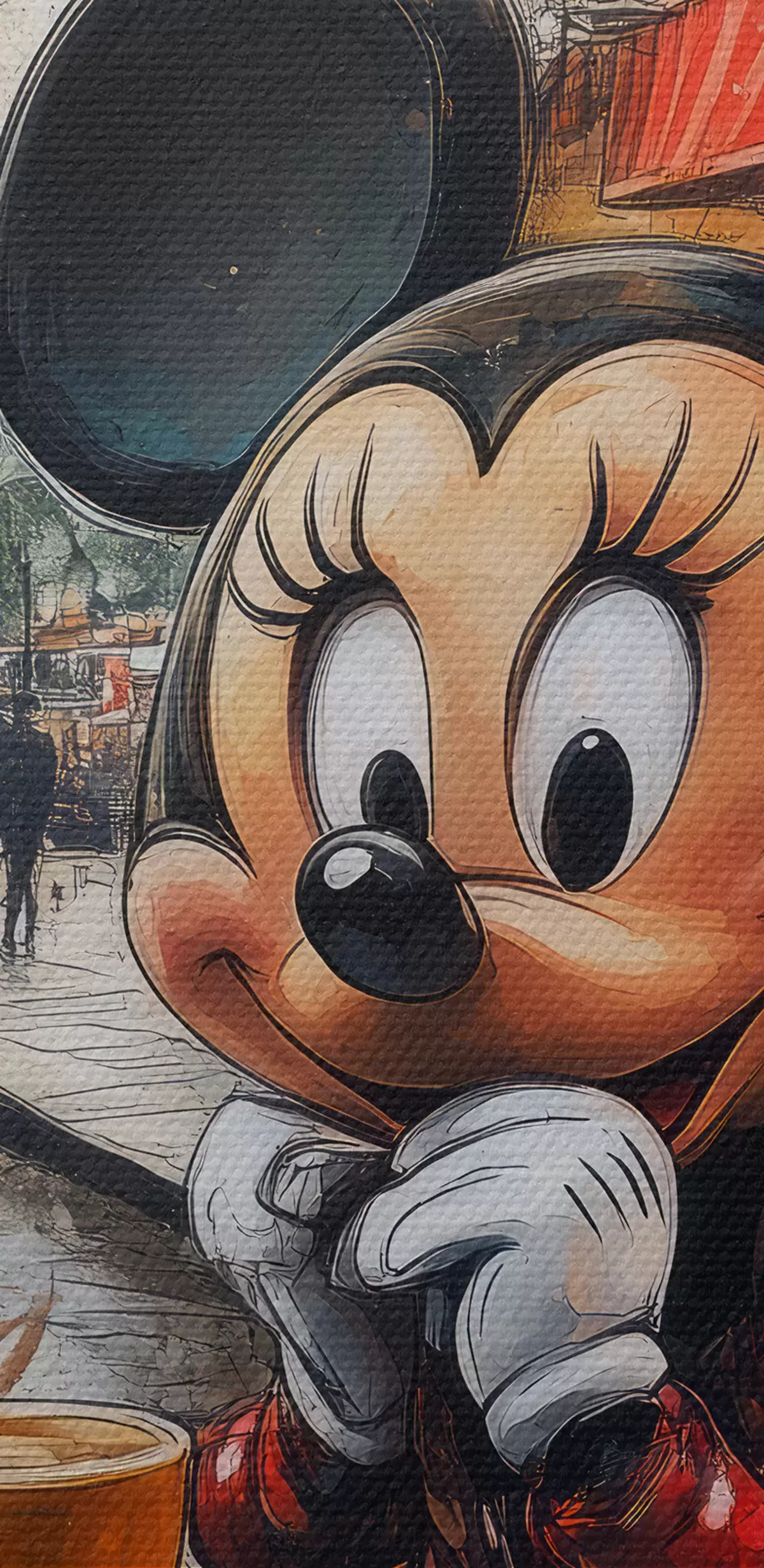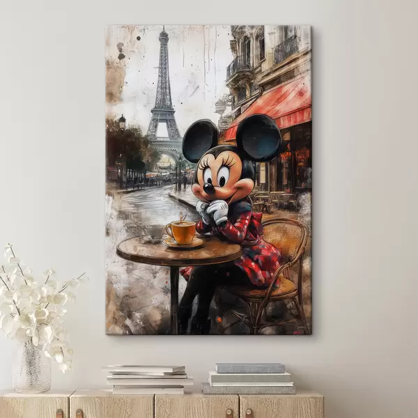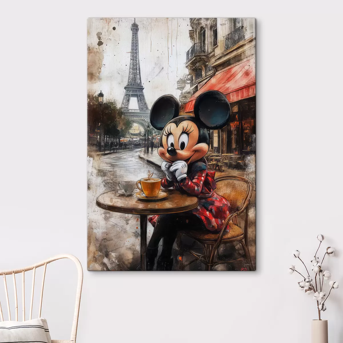 Maalid Miki Hiire tüdruk joob kohvi Pariisis Eiffeli torni taustal Nr s40972