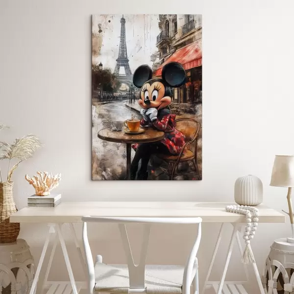 Maalid Miki Hiire tüdruk joob kohvi Pariisis Eiffeli torni taustal Nr s40972