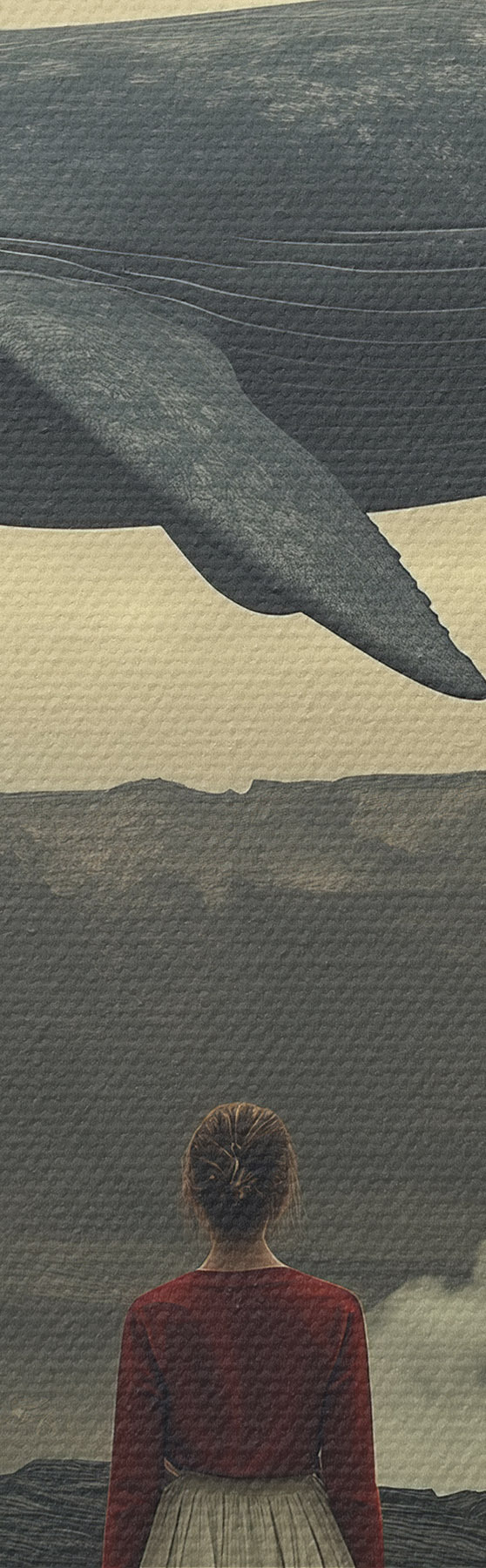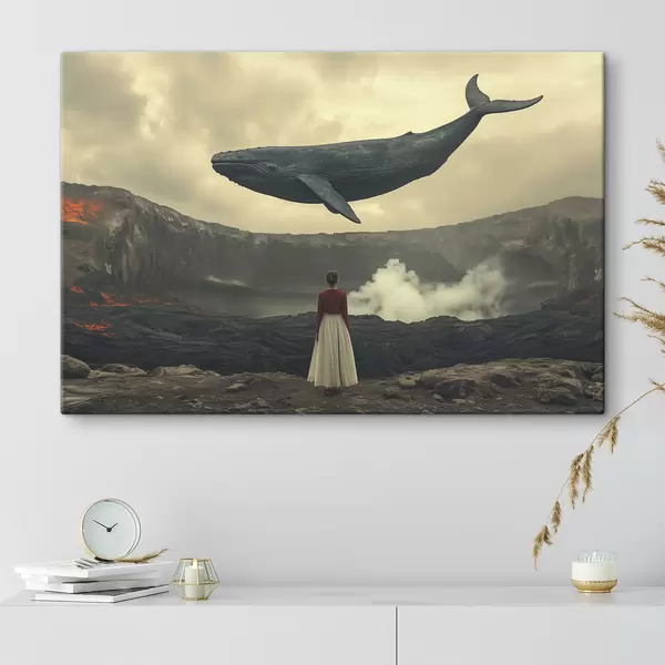 Maalid Tüdruk laava peal koos suure lendava vaalaga taevas Nr s40986