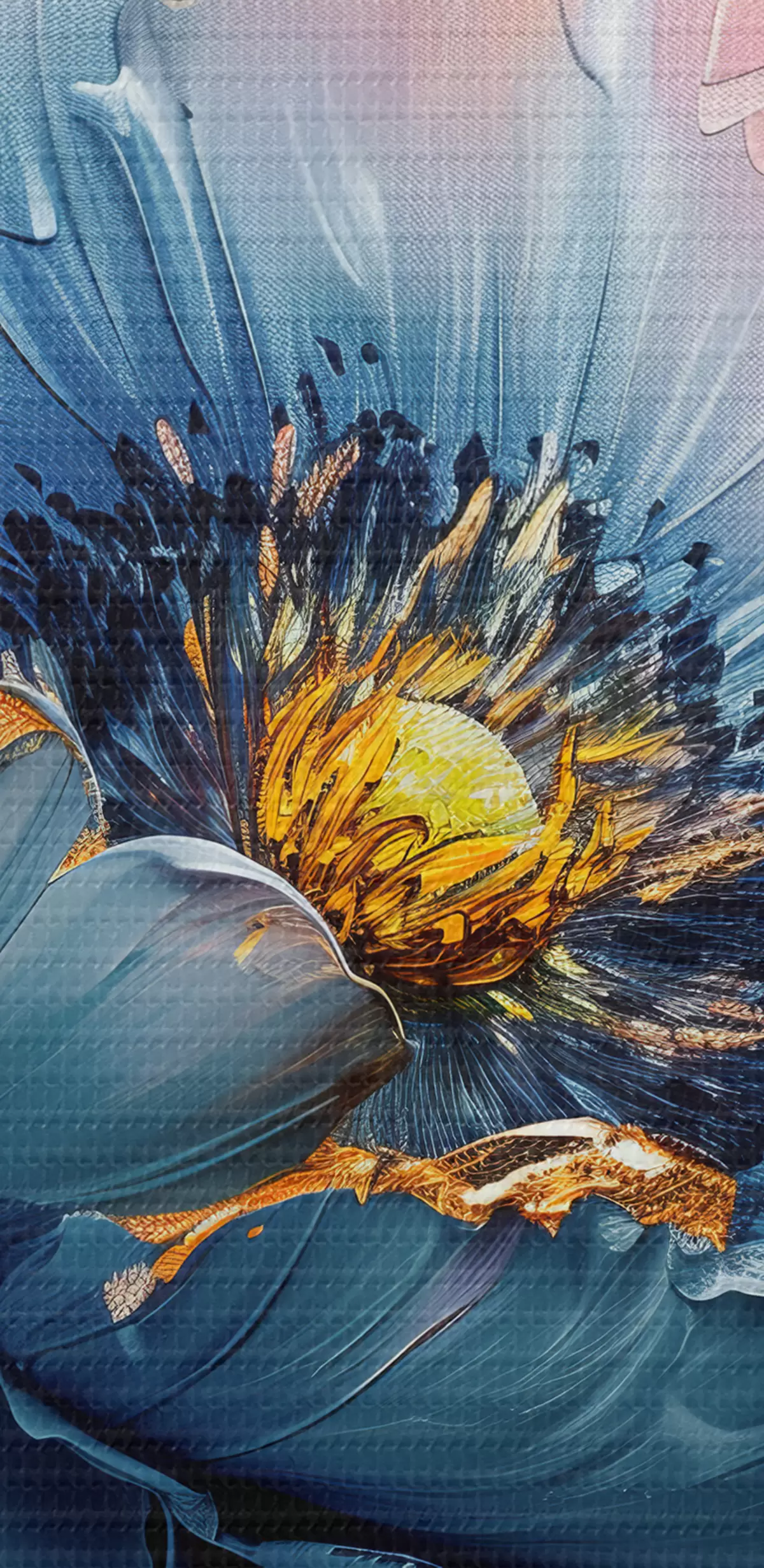 Selle lõuendi peenike niidipunus meenutab professionaalse kunstniku lõuendi pinda.