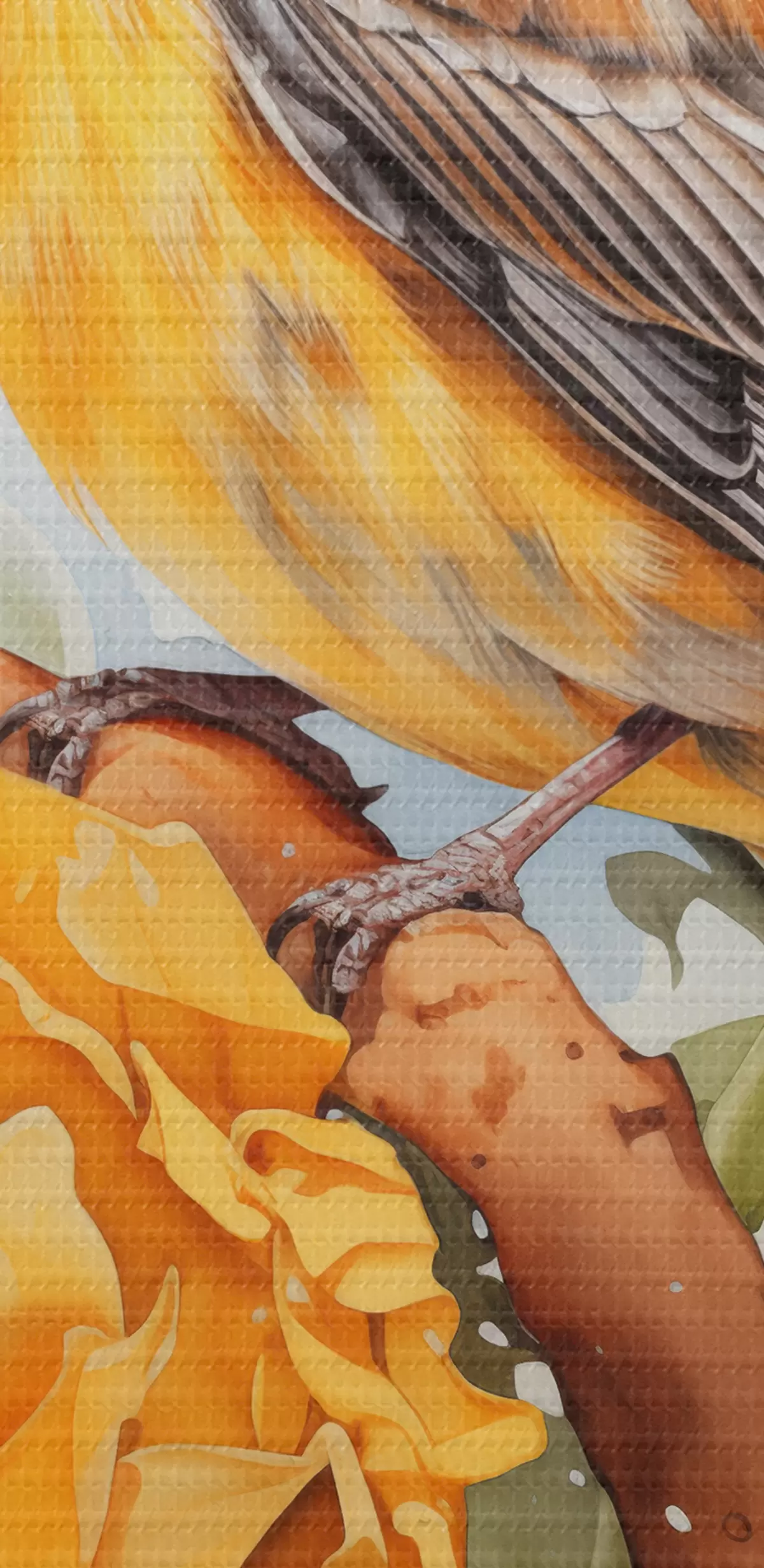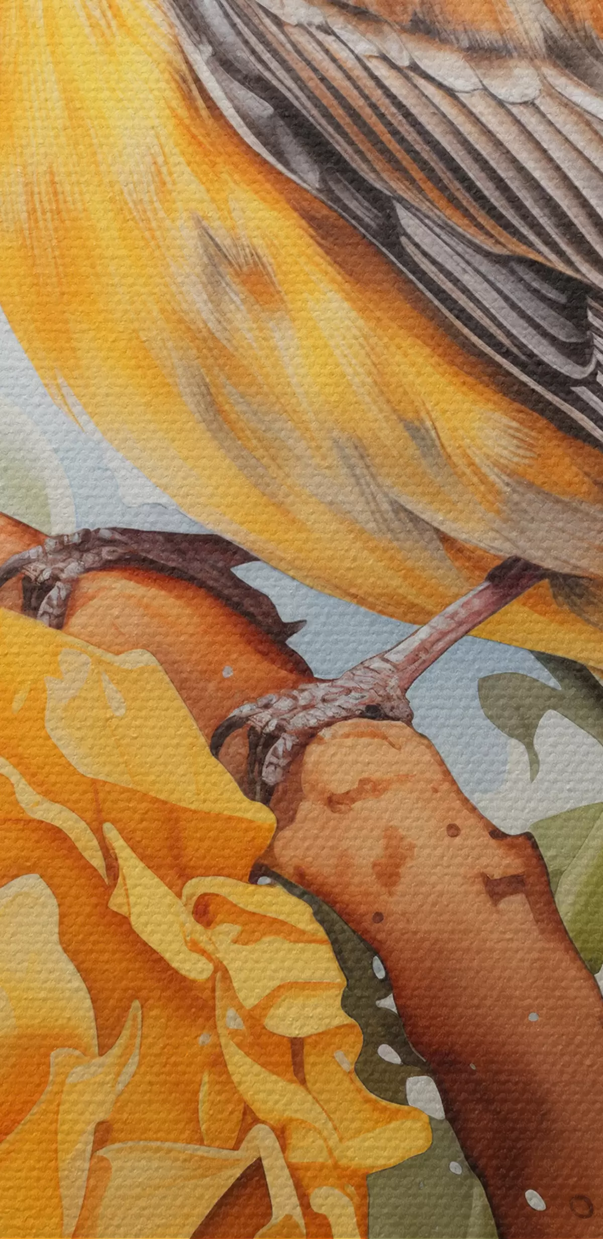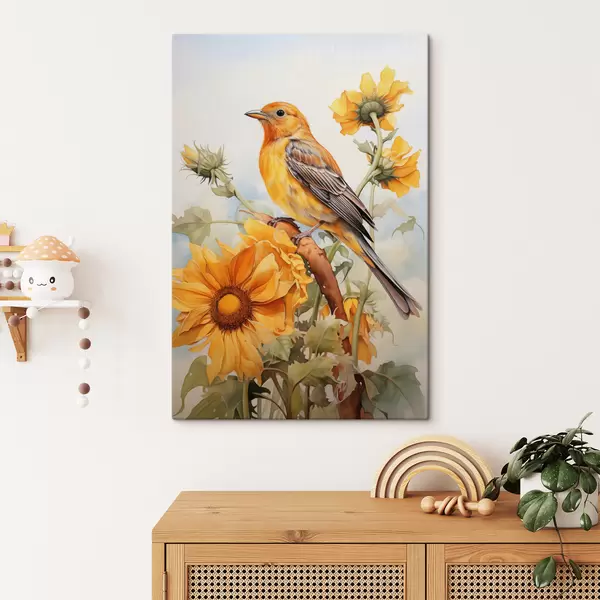 Maalid Kollane lind istub päevalille akvarellil Nr s41015