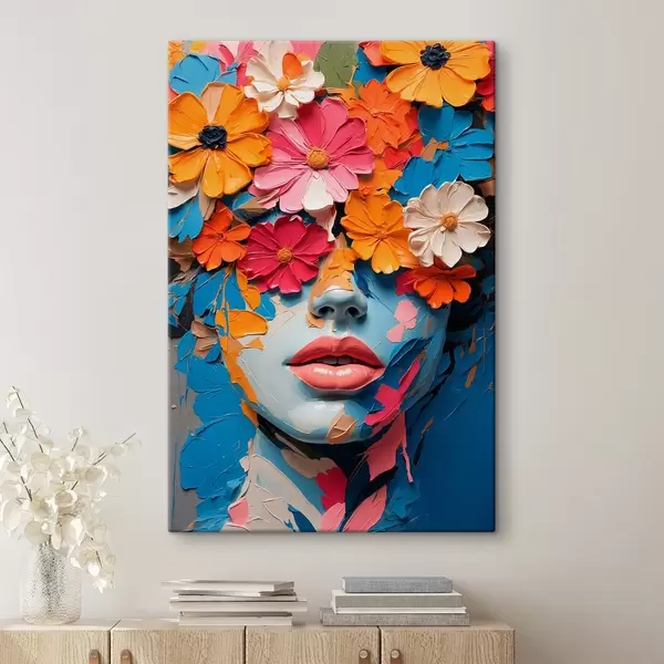 Maalid Tüdruku nägu õliga kaetud lilledega Nr s41023