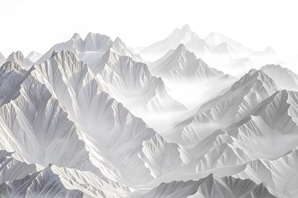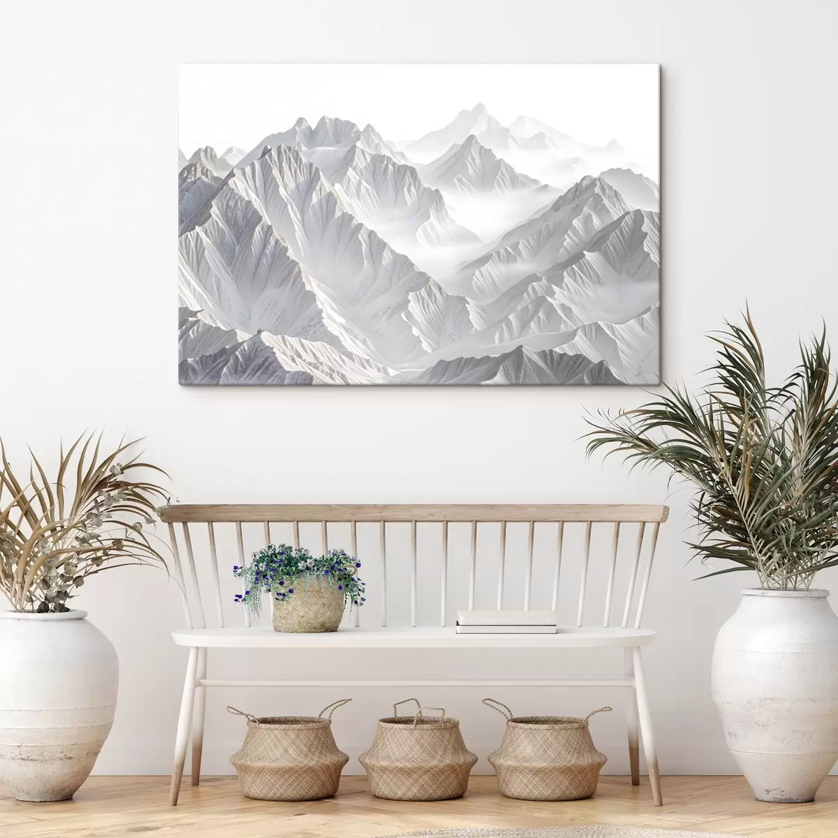 Maalid Lumine minimalistlik mäetipud sumedal, udusel maastikul Nr s41083