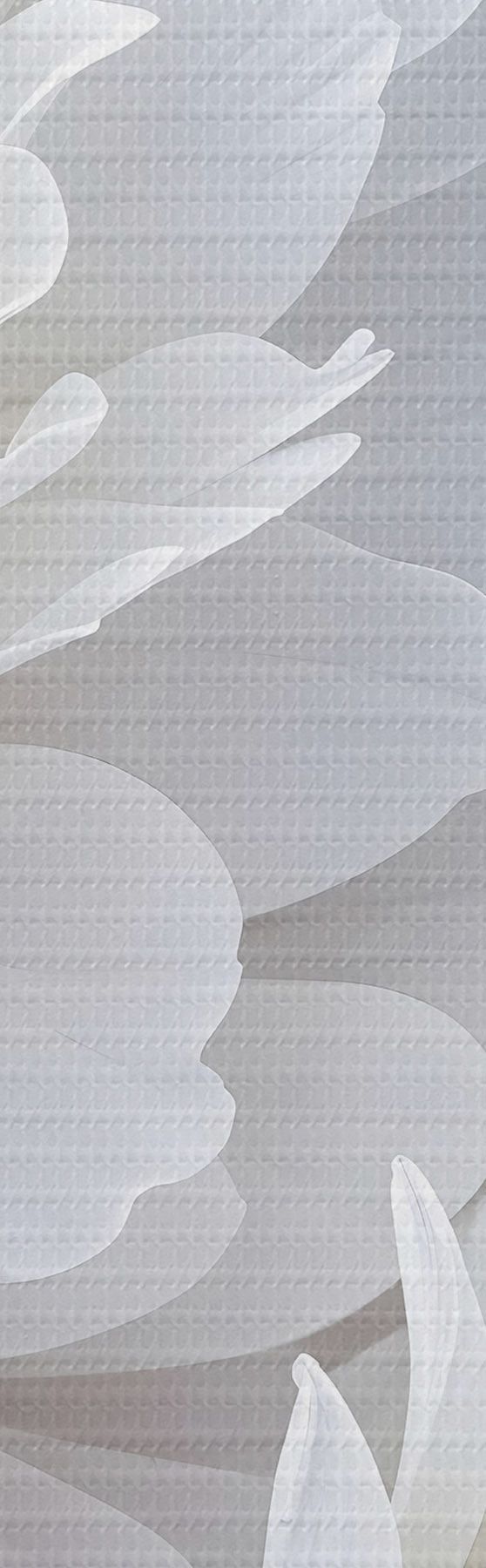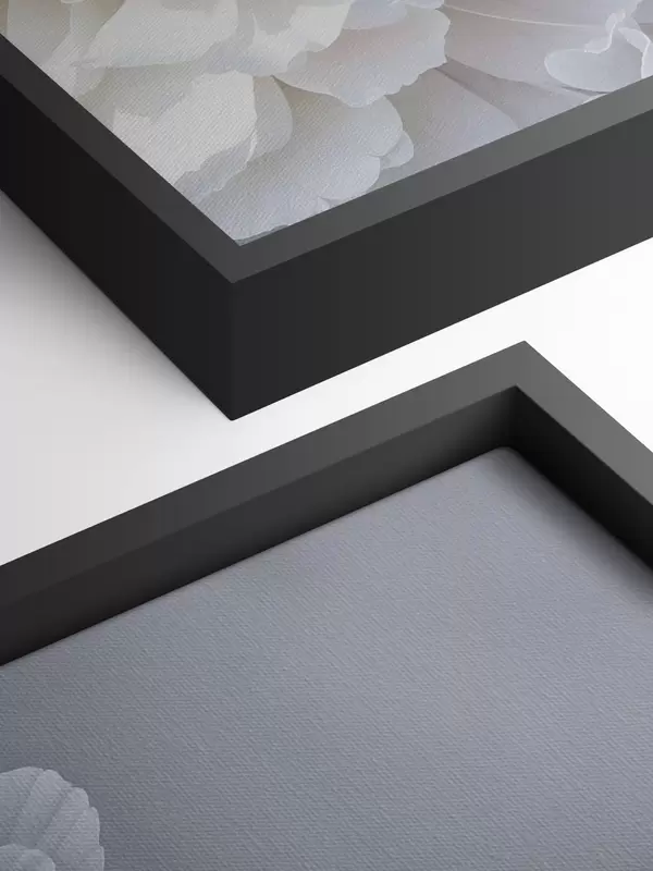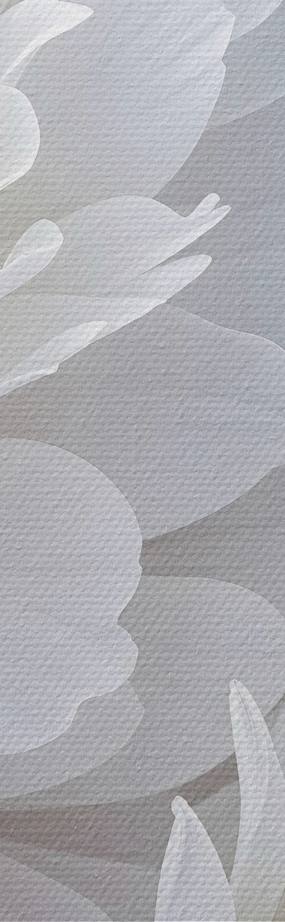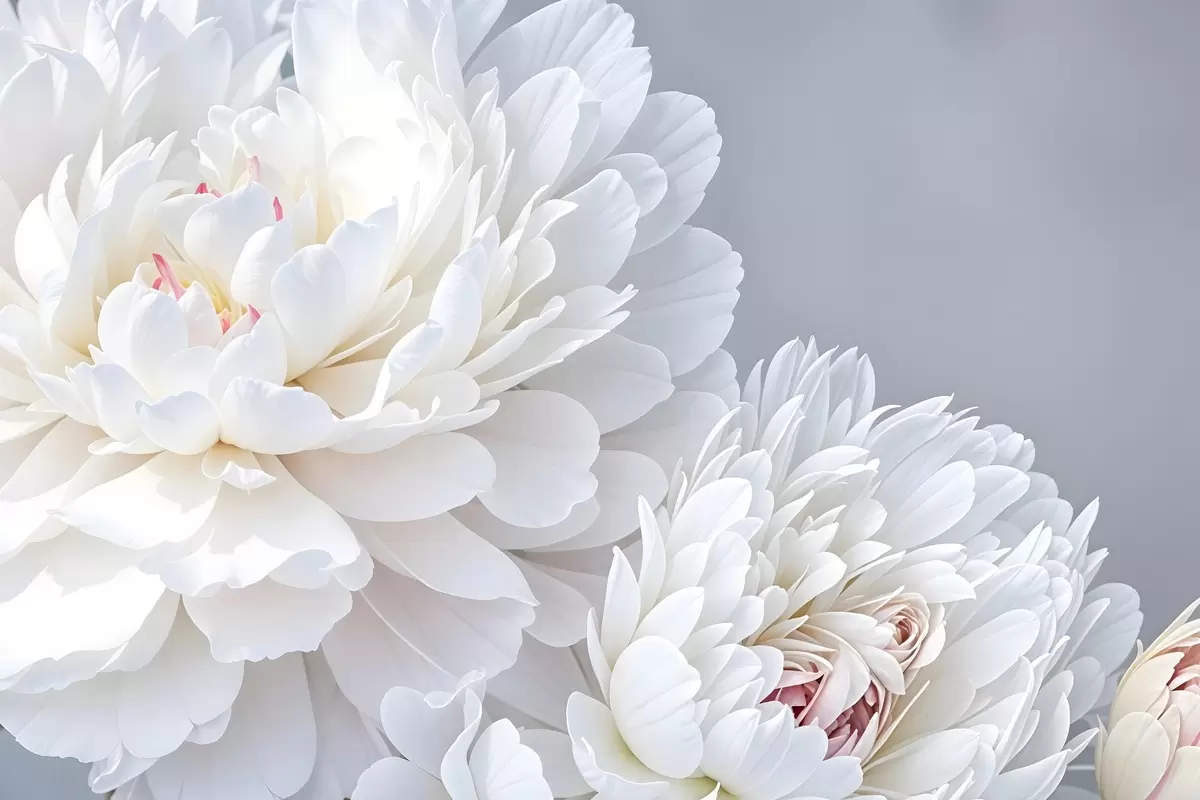 Pilt Valged pehmete, õrnade kroonlehtedega pioonililled helehallil taustal s41085