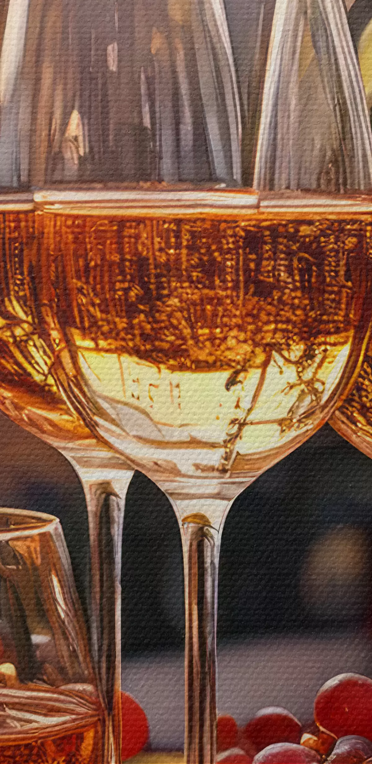 Maalid klaasid veiniga, viinamarjad laual, vaatepilt Nr s41104
