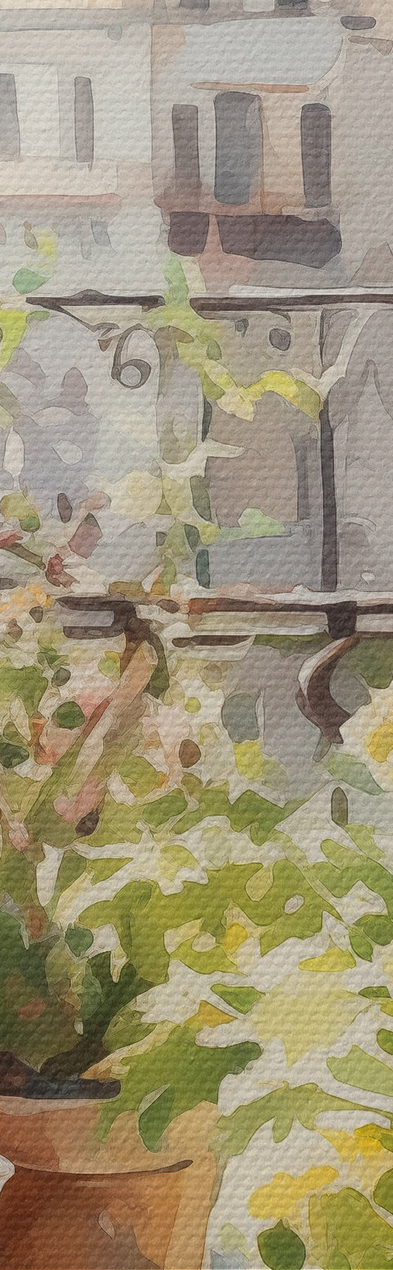 Maalid Romantiline õhtusöök linnavaatega, akvarell, lilleline Nr s41168