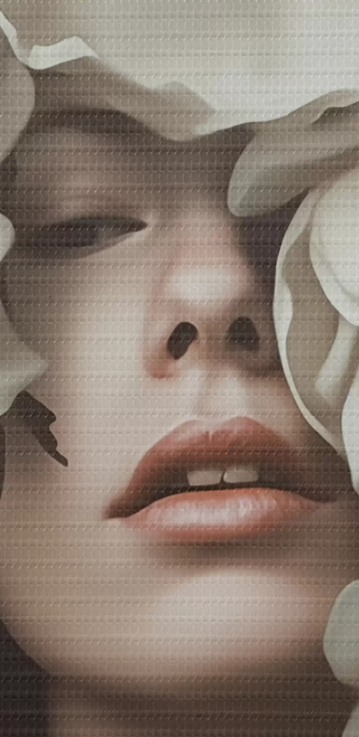 Selle lõuendi peenike niidipunus meenutab professionaalse kunstniku lõuendi pinda.