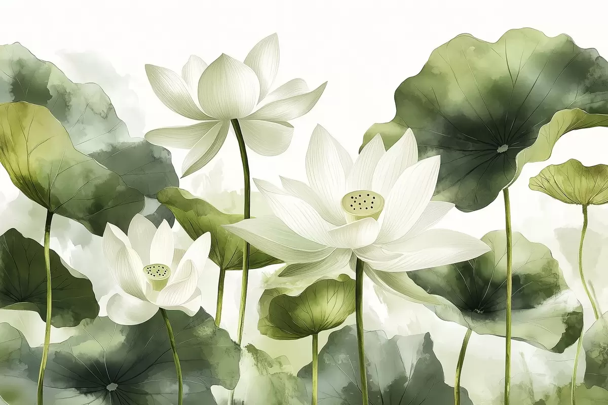 Maalid Ilusad akvarell-lootose lilled Nr s41227