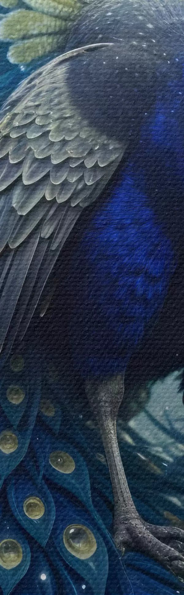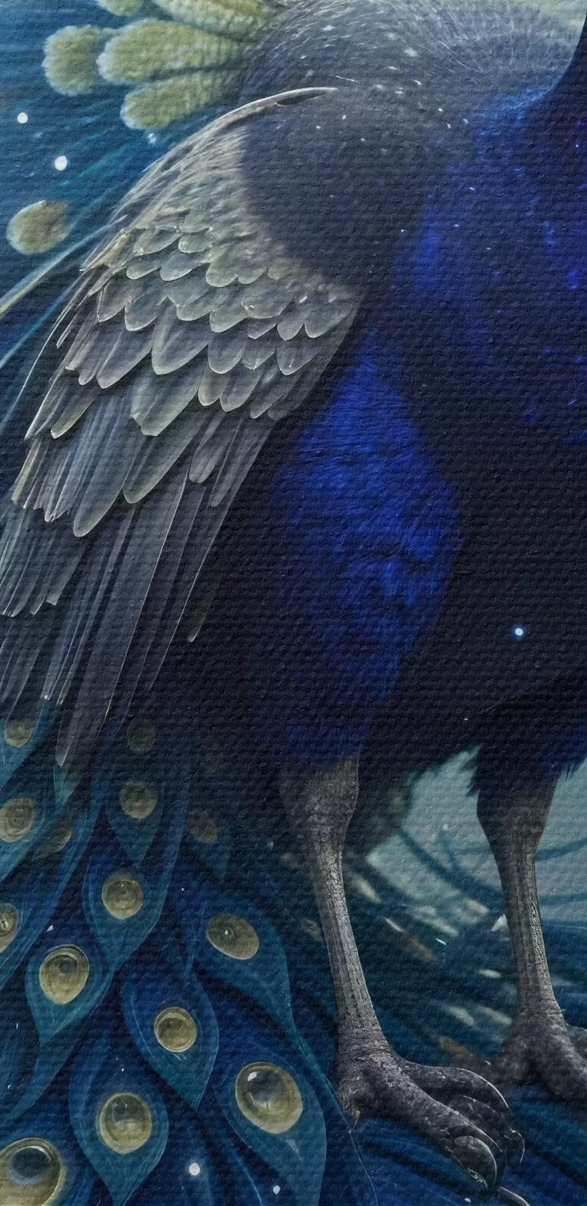 Maalid Elav ja majesteetlik paabulind öise tähistaeva taustal, mis loob maagilise ja eeterliku atmosfääri Nr s41256