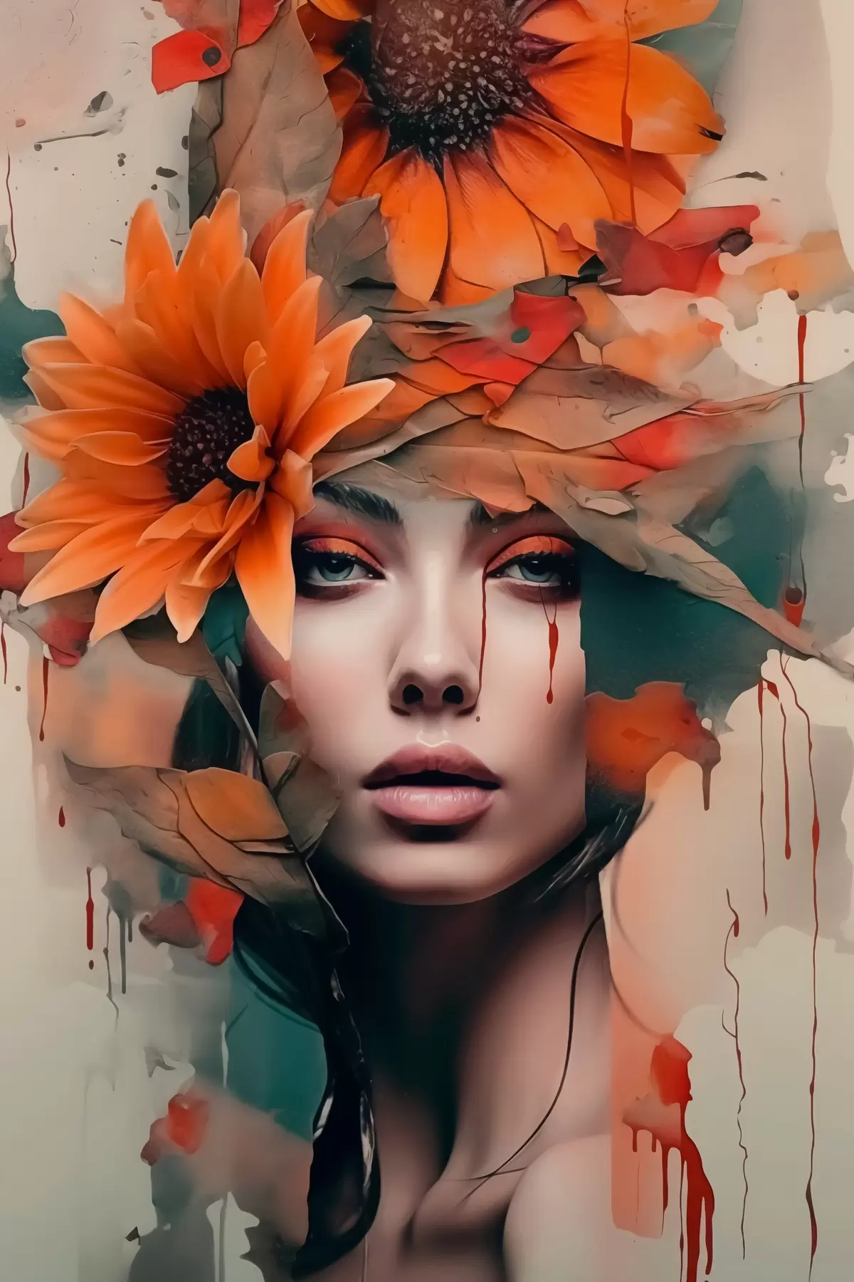 Maalid Kunstikollaaž tüdruku portree lilledega Nr s41274