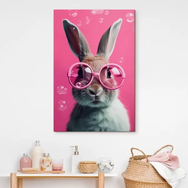 Maalid Jänes roosa prillidega roosa taustal Nr s41280
