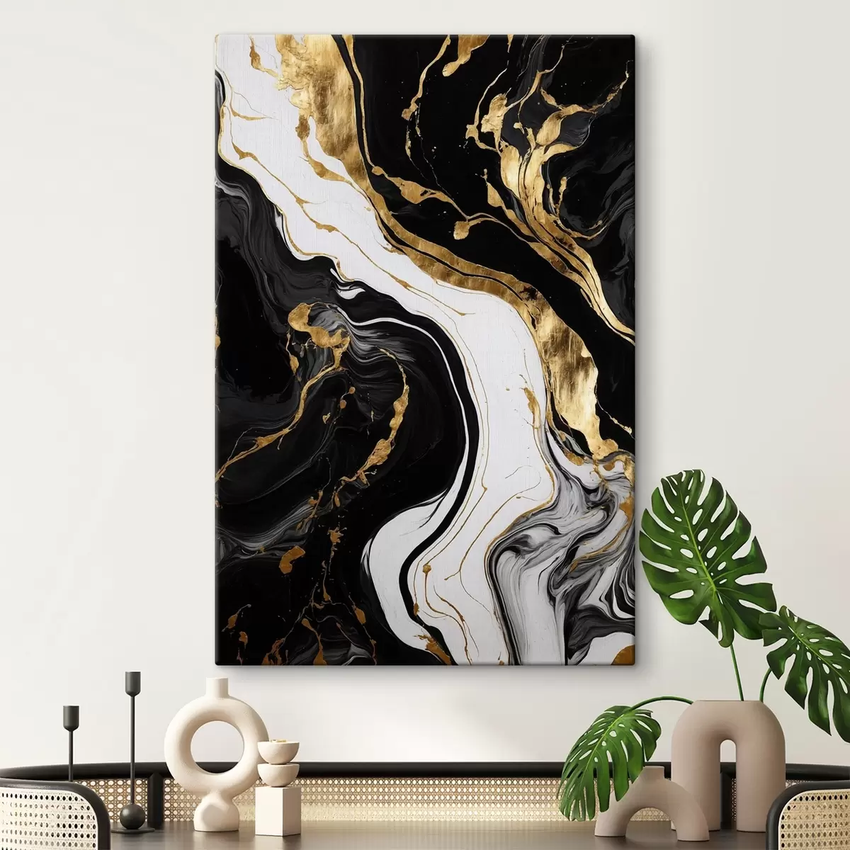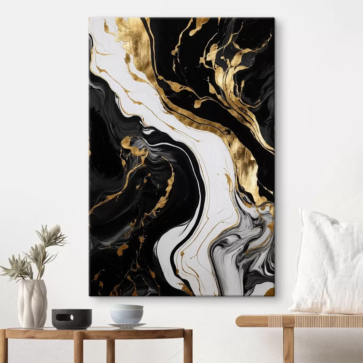 Maalid Must-valge abstraktne värvimine kollaste laikudega Nr s41292