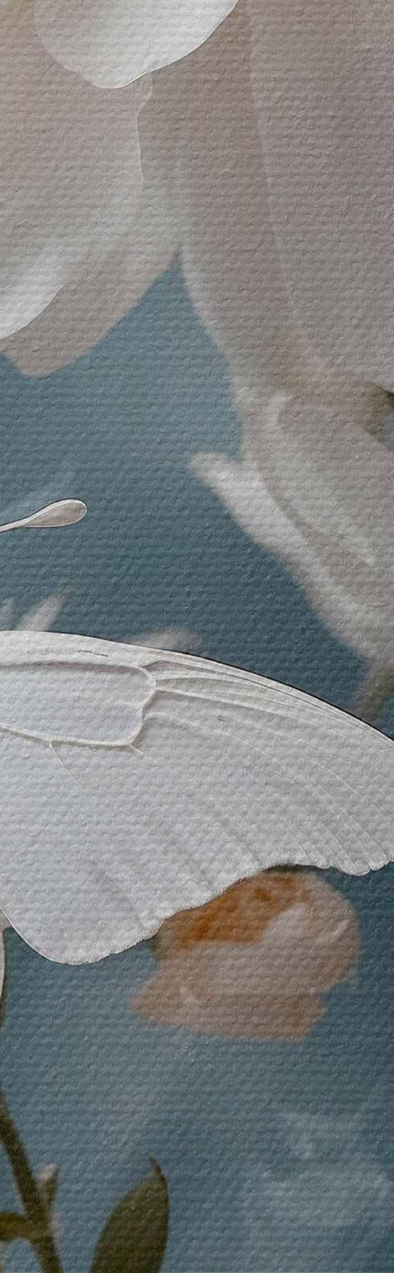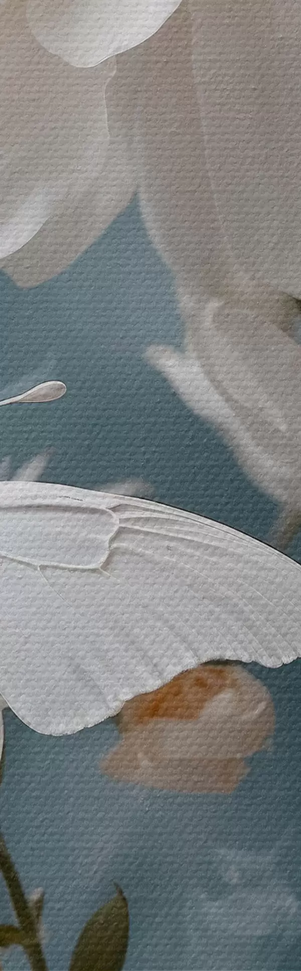 Maalid Valged lilled ja liblikas hägusel taustal Nr s41312