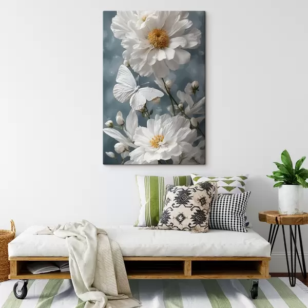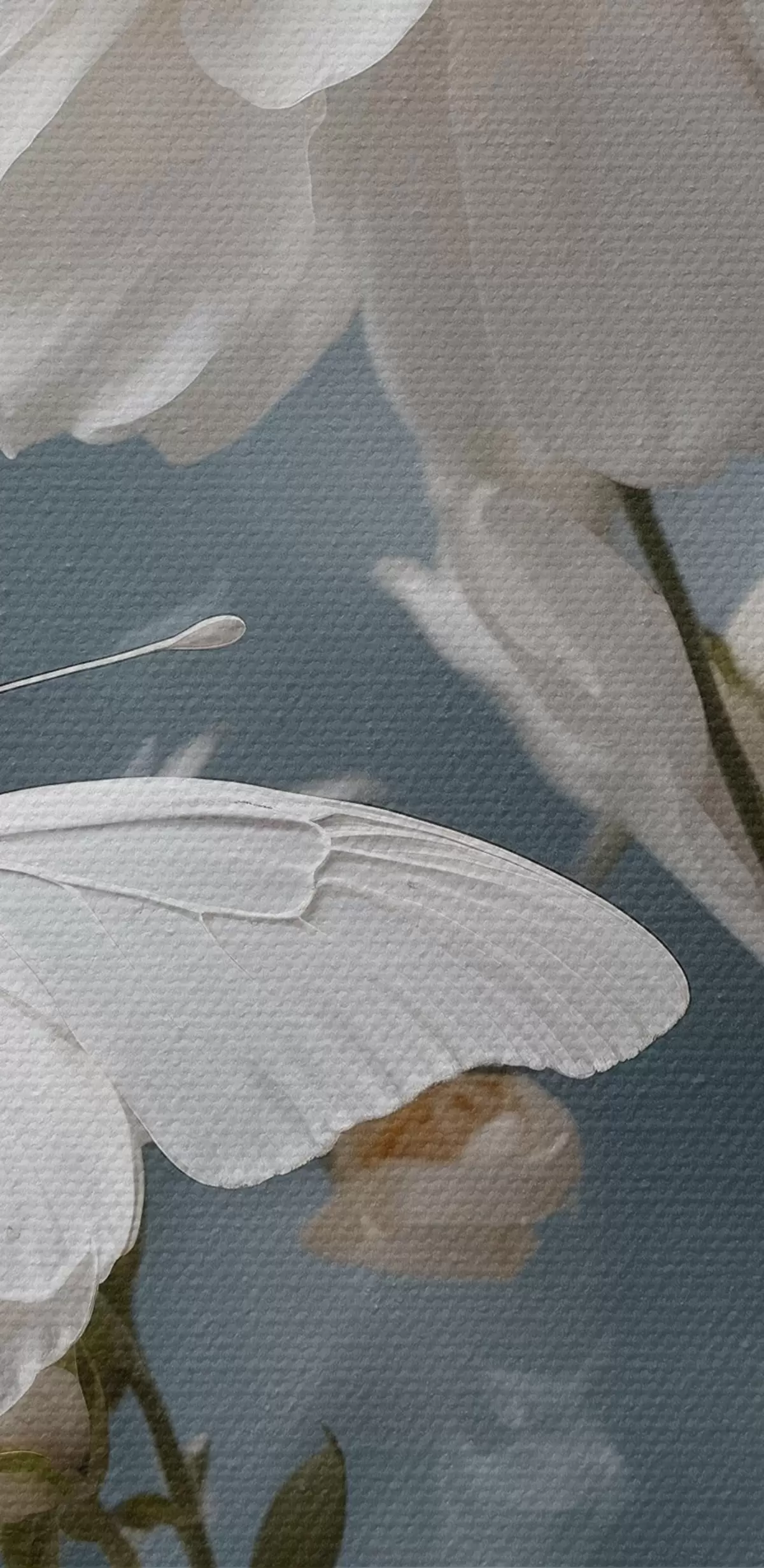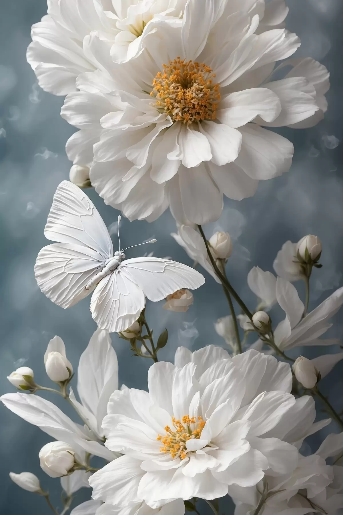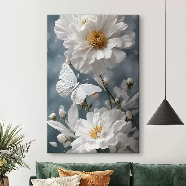 Maalid Valged lilled ja liblikas hägusel taustal Nr s41312
