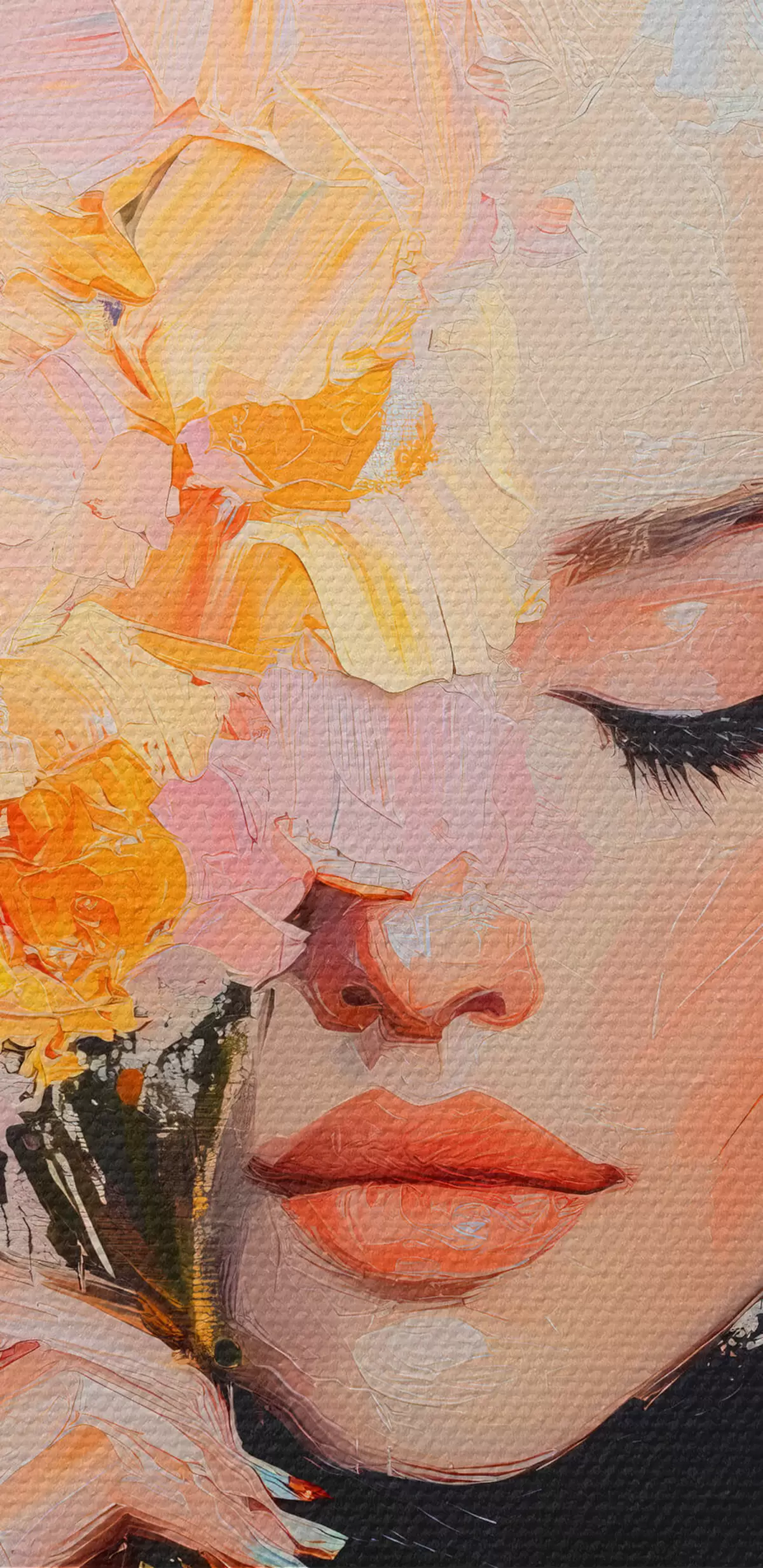 Maalid Abstraktne naine lillekimbuga kätes, pintslitõmbedega Nr s41355