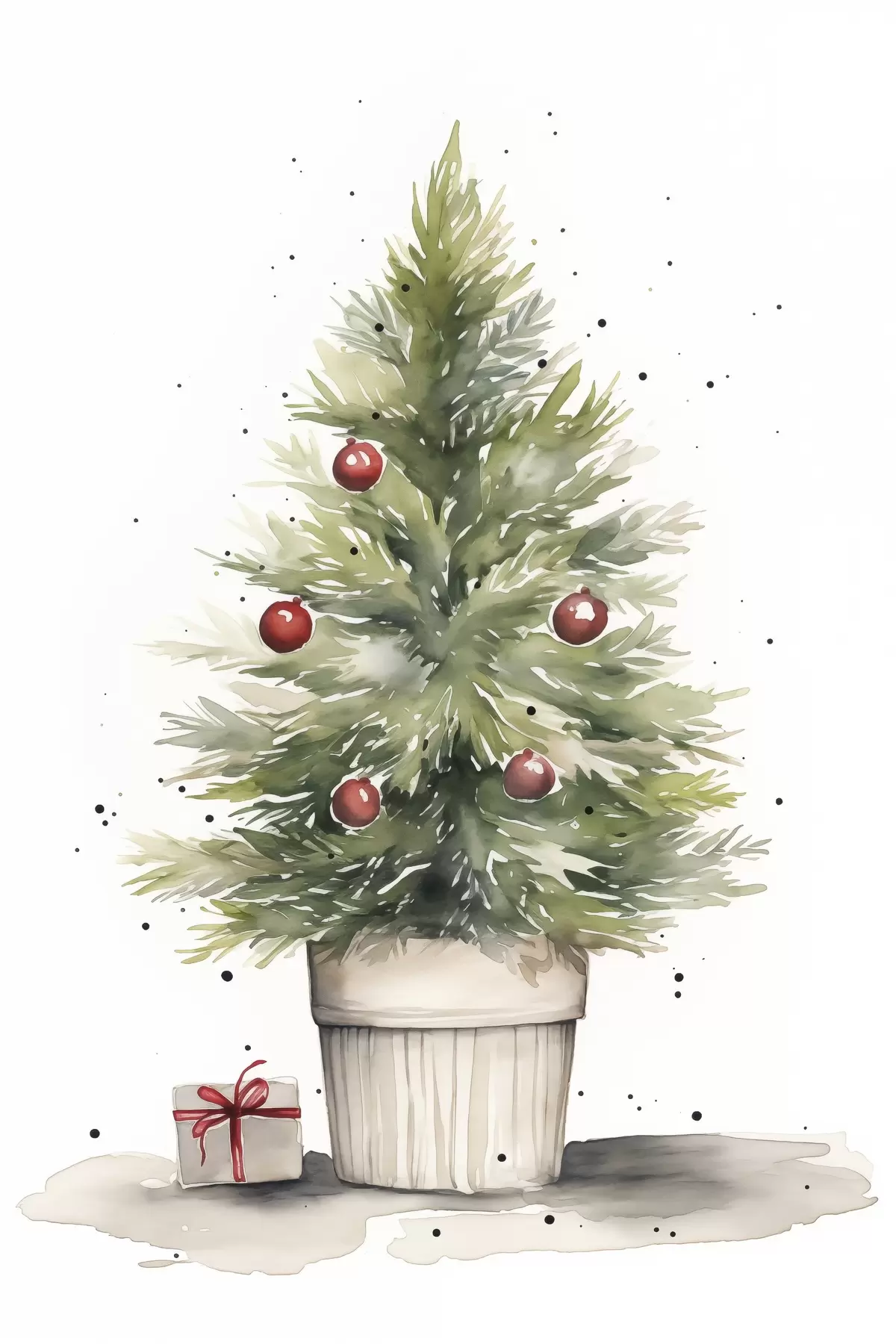Maalid Akvarell jõulupuu potis, männipuu, kingitus Nr s41361