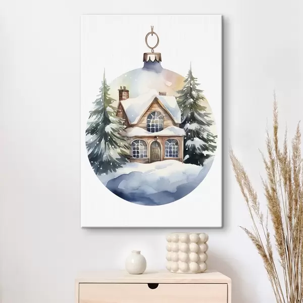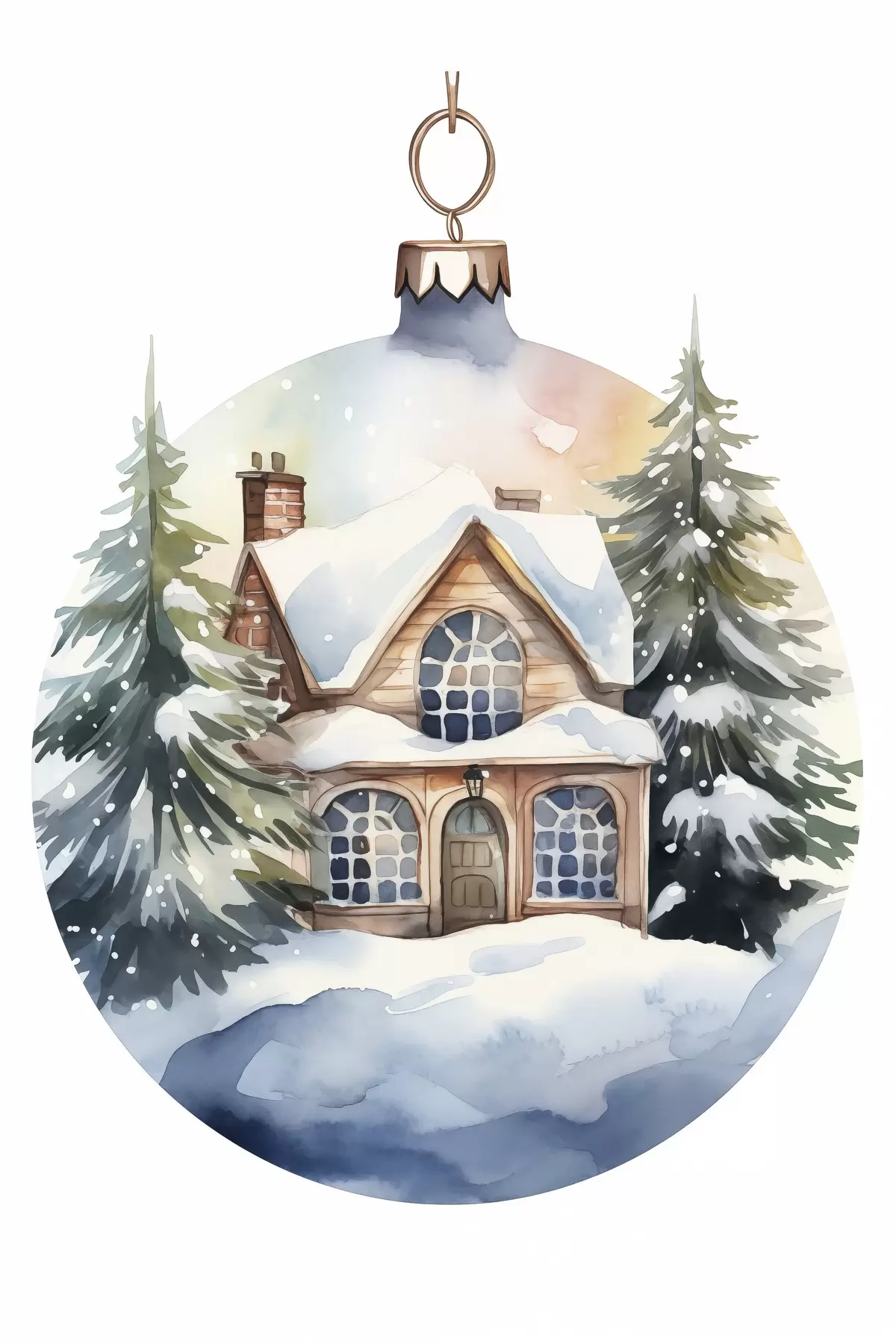 Maalid Jõulud dekoratiivne pall koos akvarelliga maja lumes, mändide puudega Nr s41363