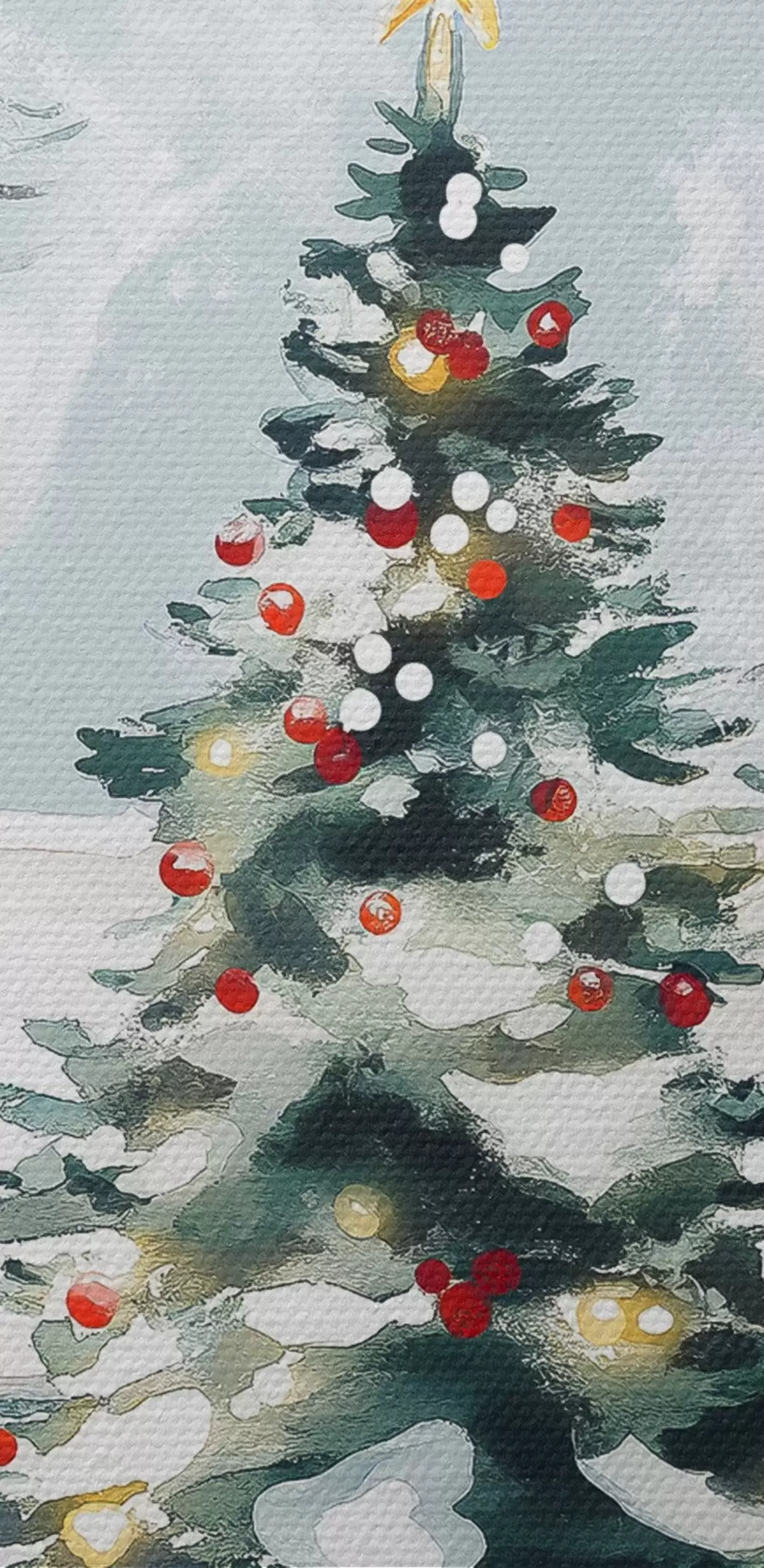 Maalid Talvine linn, kaunistatud mänd, jõulud, akvarell Nr s41364