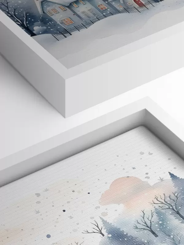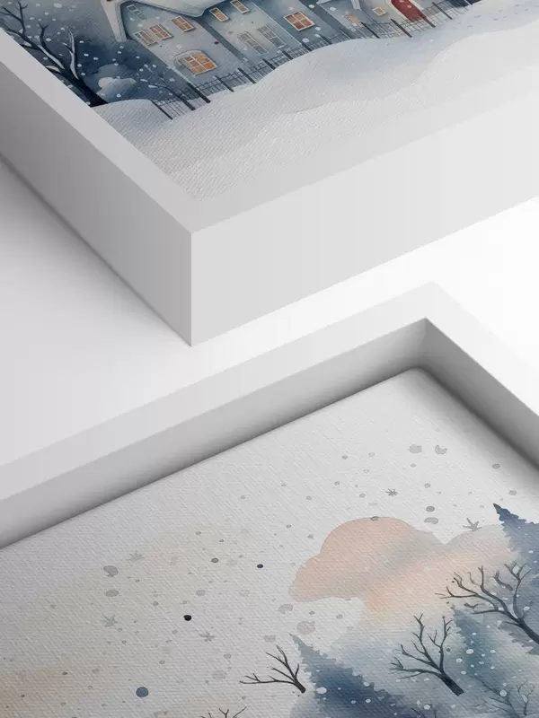 Maalid Akvarell talvemaastik majade ja männimetsaga Nr s41389