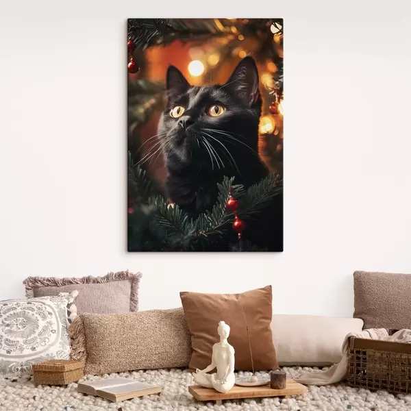 Maalid Must kass uusaastatulede taustal Nr s41441