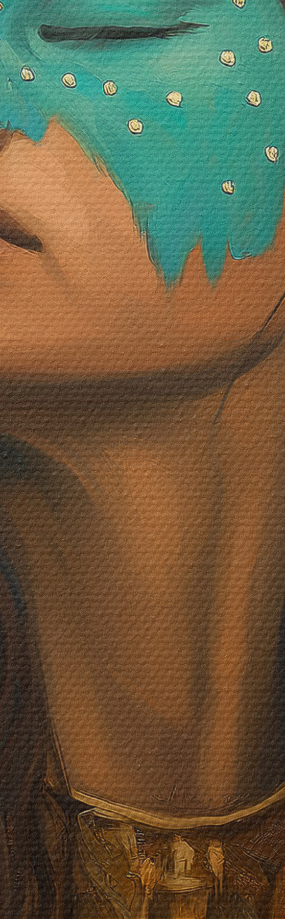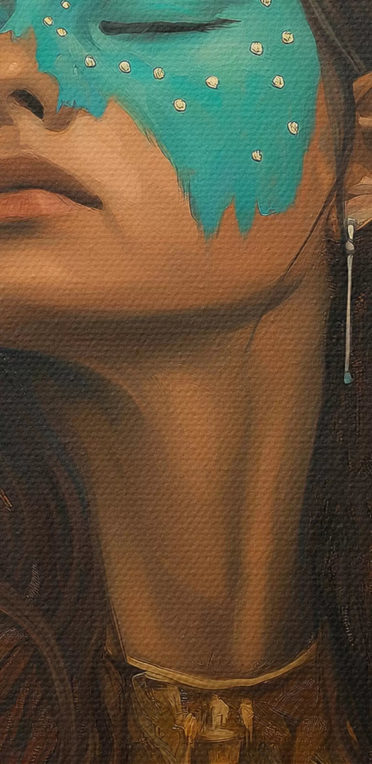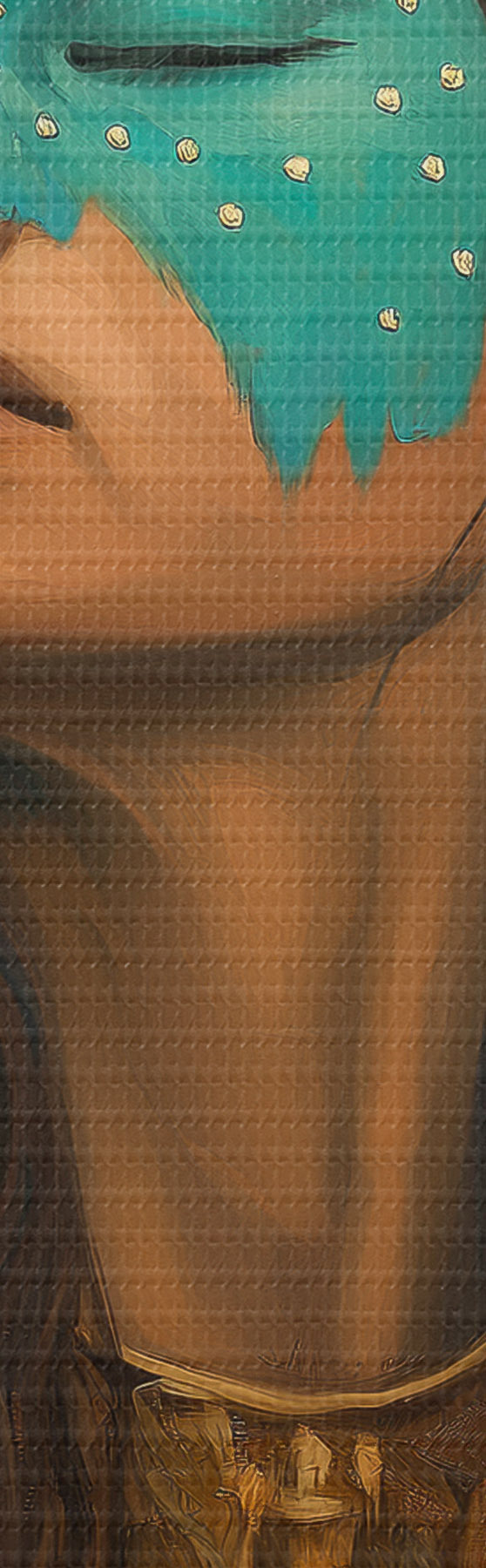 Selle lõuendi peenike niidipunus meenutab professionaalse kunstniku lõuendi pinda.