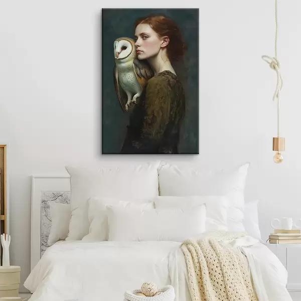 Maalid Naise portree öökullaga õlal, pintslitõmbed, akrüül Nr s41447