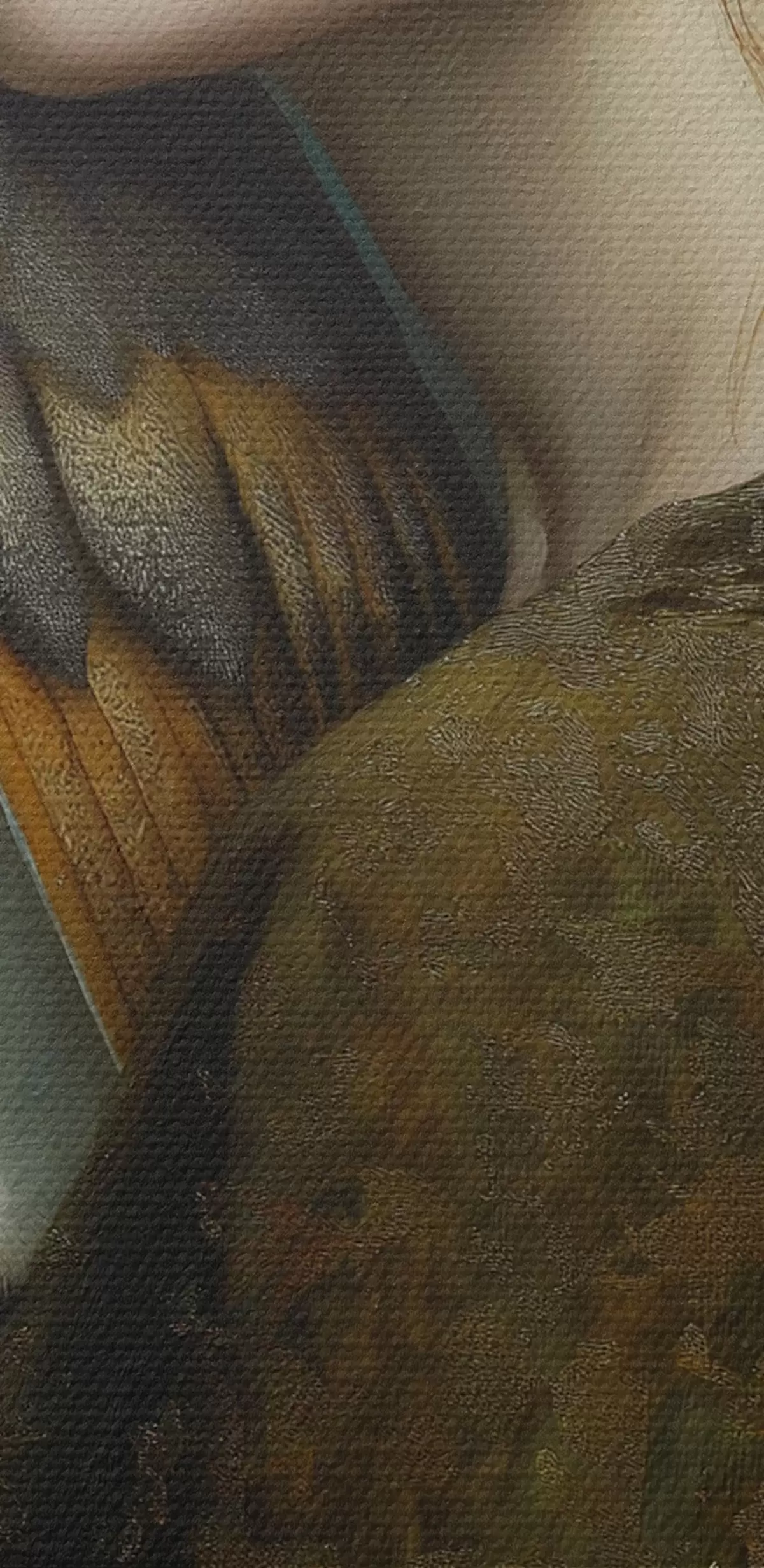 Selle lõuendi peenike niidipunus meenutab professionaalse kunstniku lõuendi pinda.