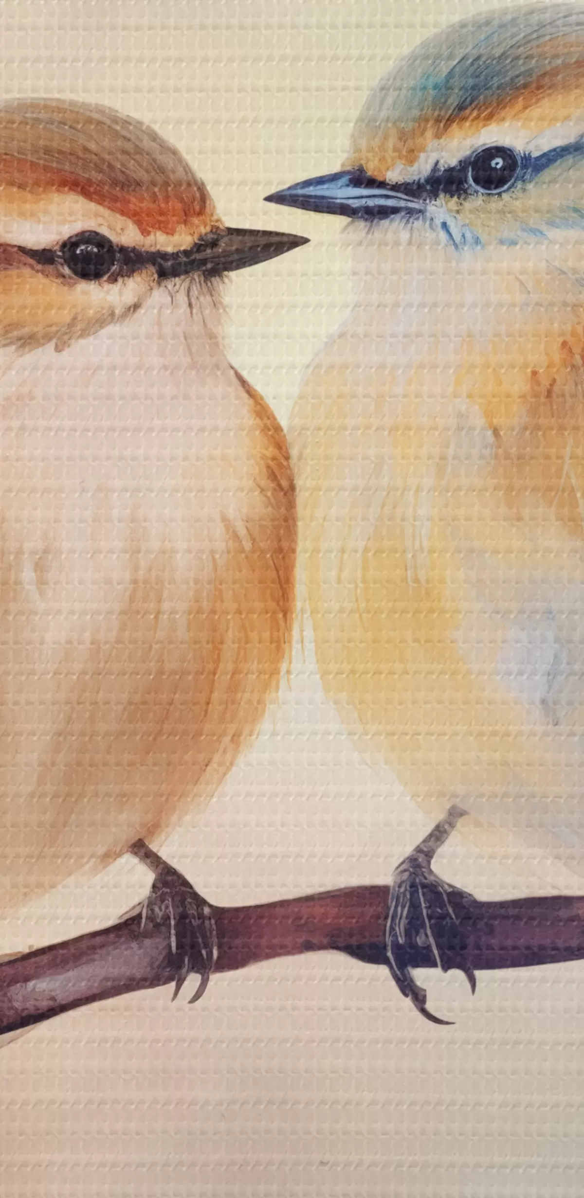 Selle lõuendi peenike niidipunus meenutab professionaalse kunstniku lõuendi pinda.