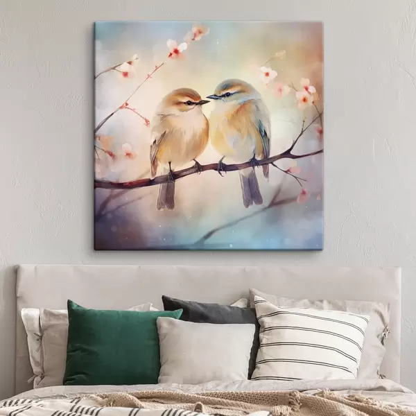 Maalid Paar linde istub õitsval oksal Nr s41476