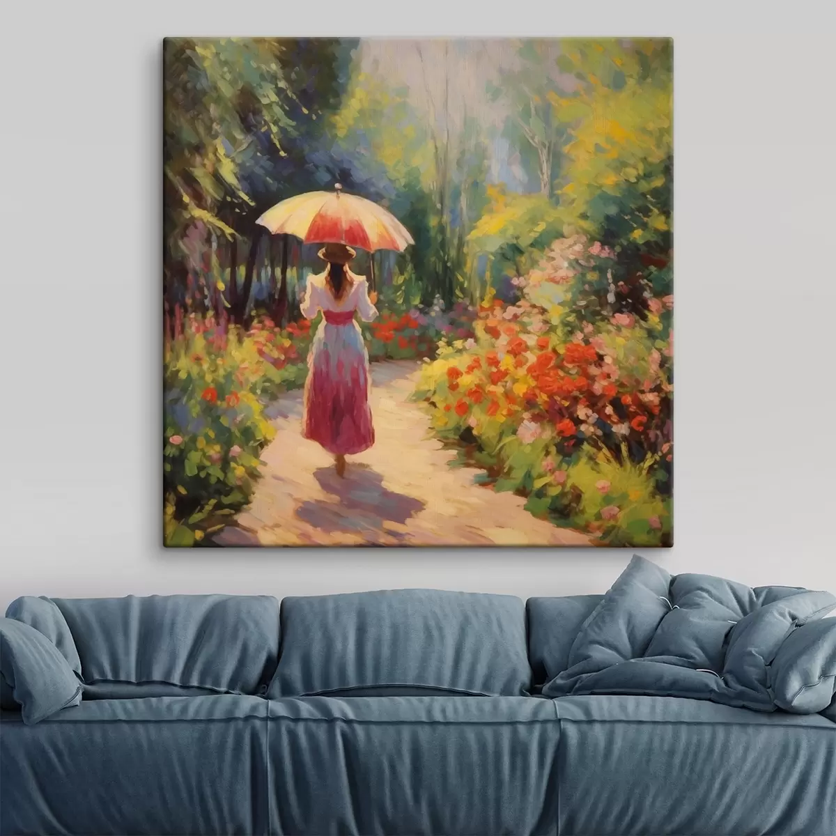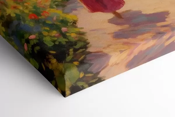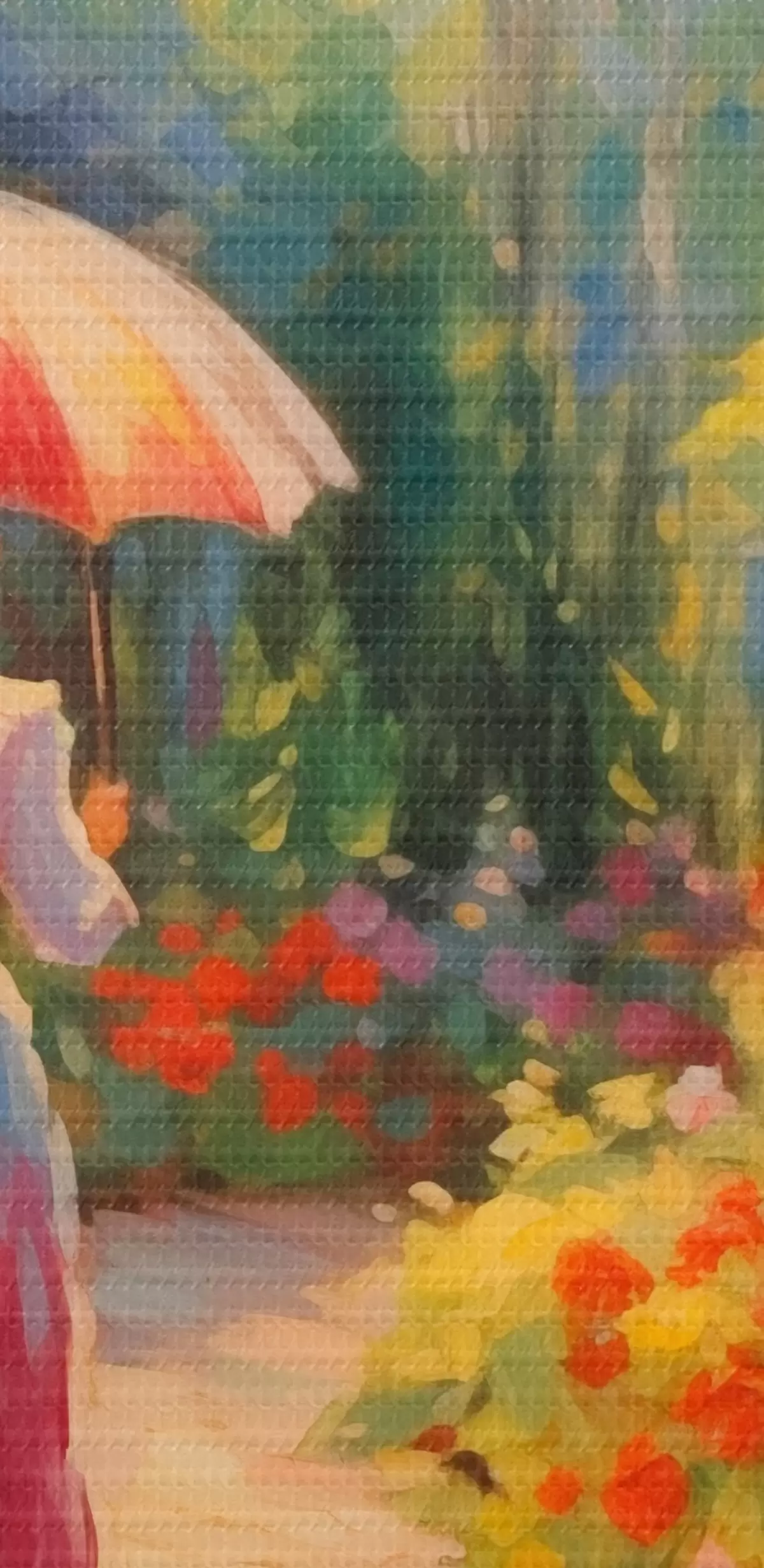 Maalid Daam vihmavarjuga õitsvas aias Nr s41495