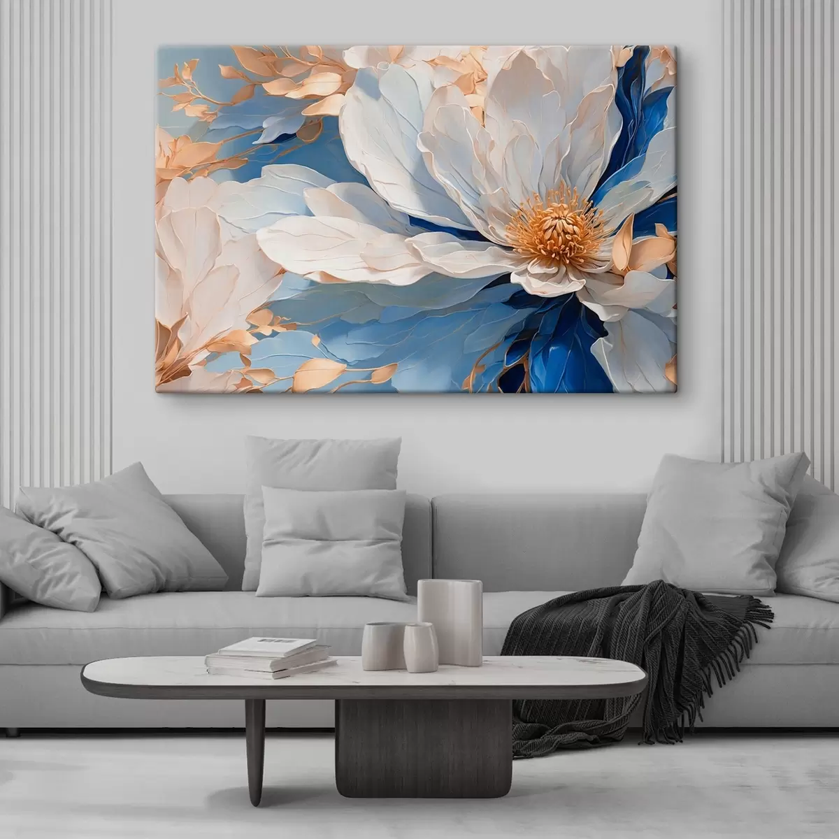 Maalid Lähivõtte valge ja sinise kroonlehega lillest Nr s41512
