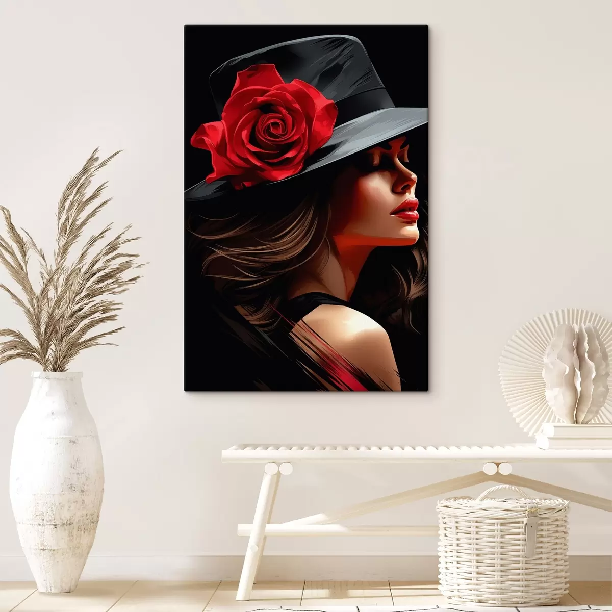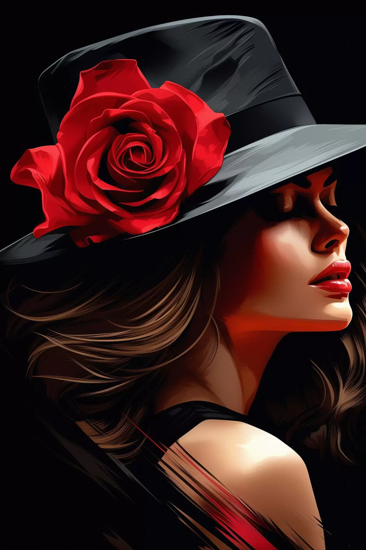 Maalid Illustratsioon tüdruk mütsiga, millel on ilus šikk roos Nr s41546