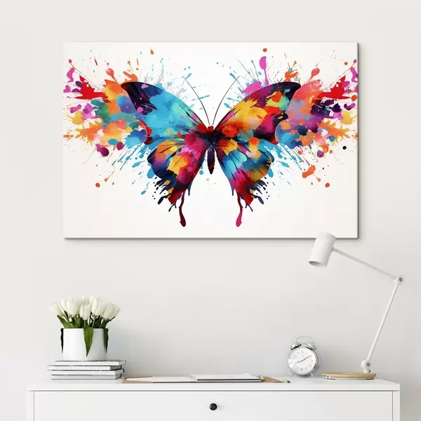 Maalid Akvarell liblikas mitmevärviliste värvipritsmete taustal Nr s41560