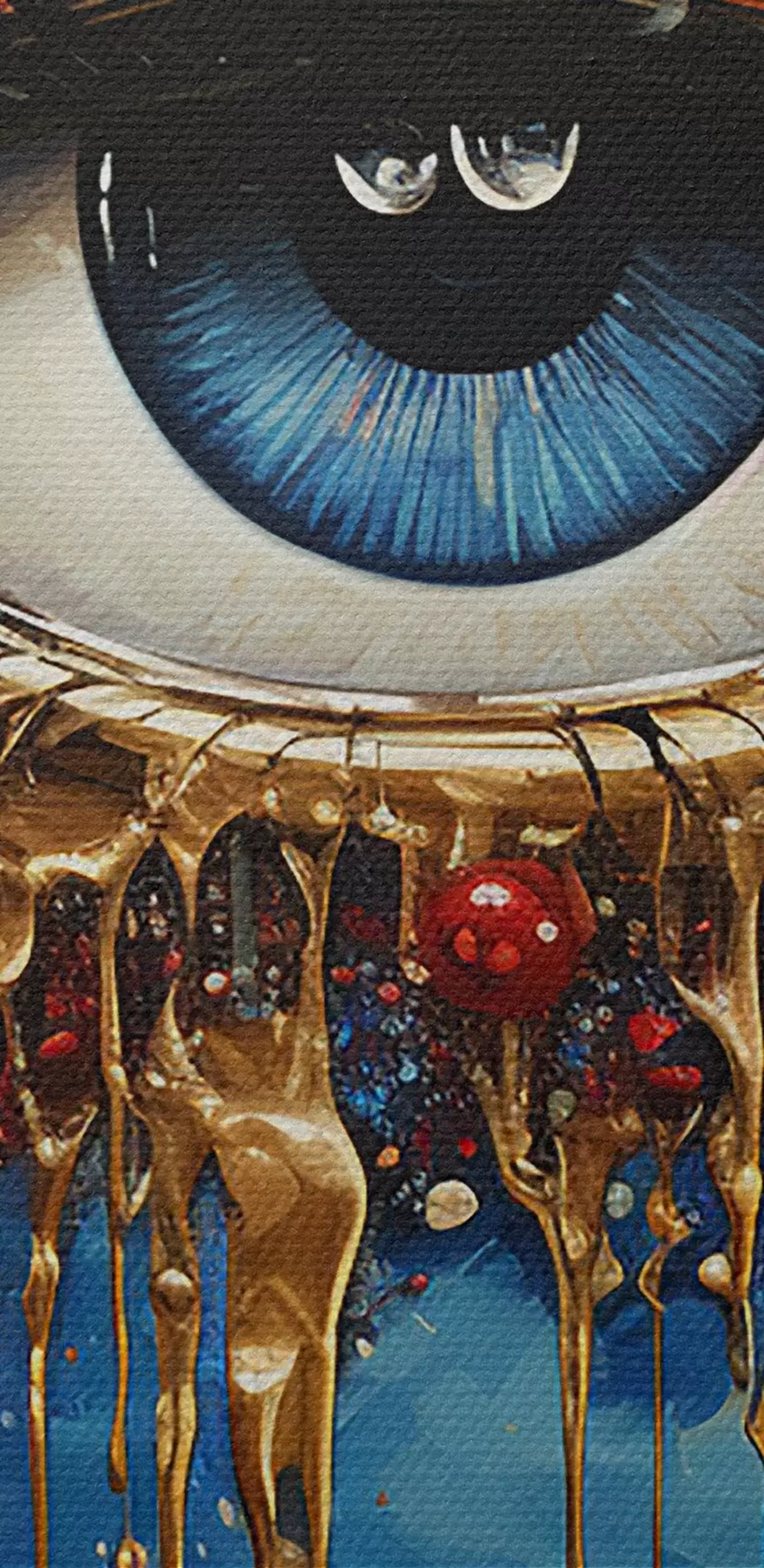Selle lõuendi peenike niidipunus meenutab professionaalse kunstniku lõuendi pinda.