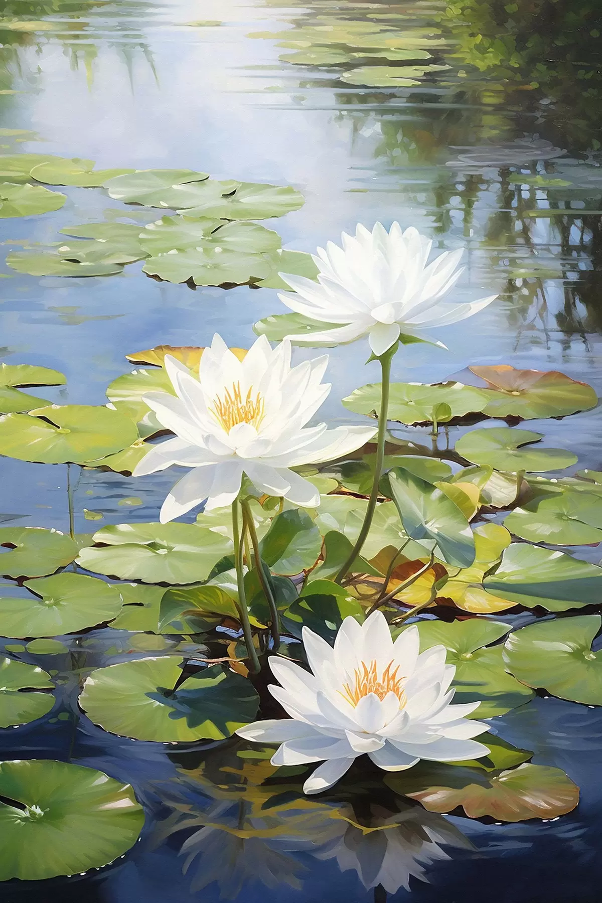 Maalid Kolm valget vesiroosi, lootoslilled Nr s41572