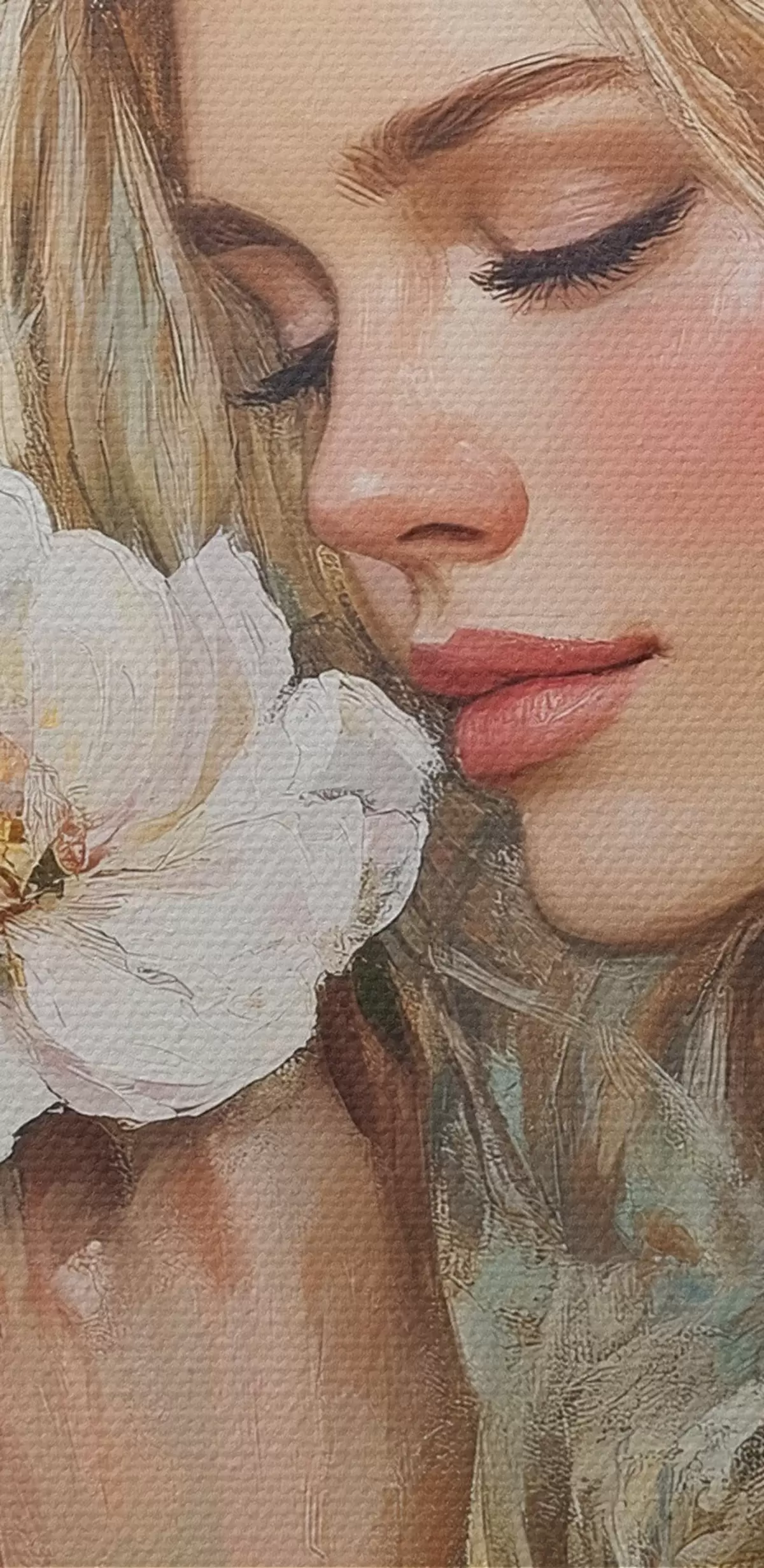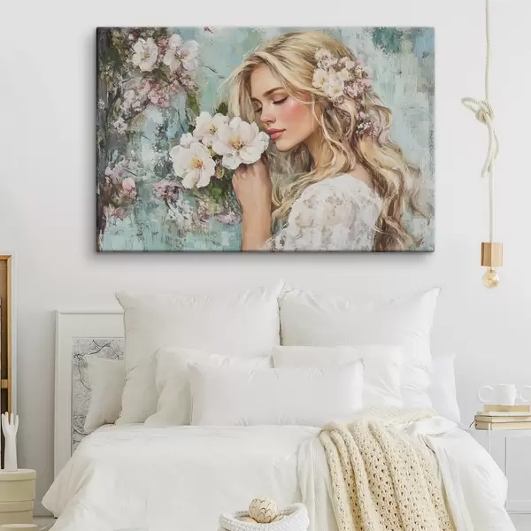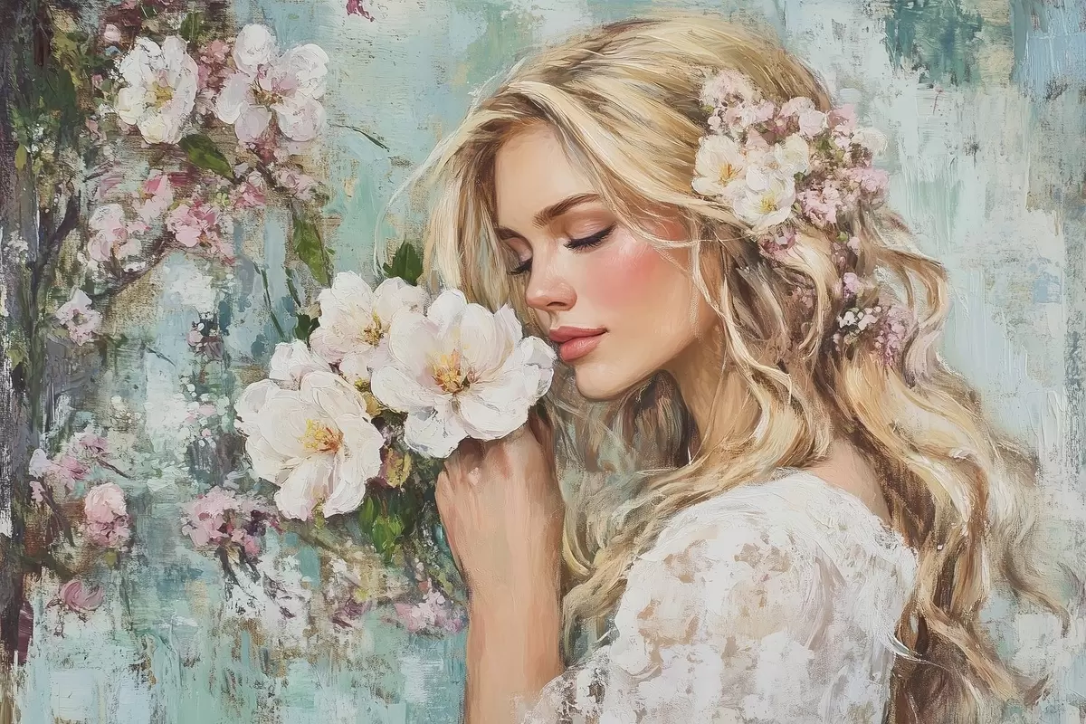 Maalid tüdruk lillede lähedal õlivärvidega Nr s41632