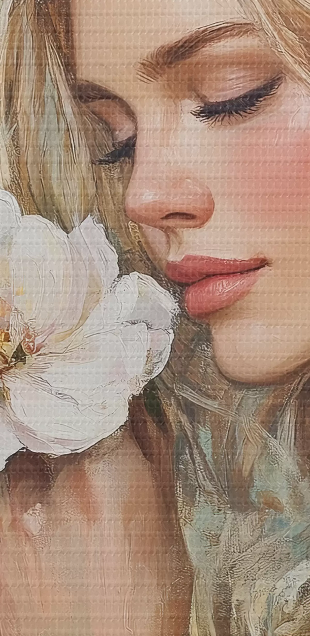 Selle lõuendi peenike niidipunus meenutab professionaalse kunstniku lõuendi pinda.