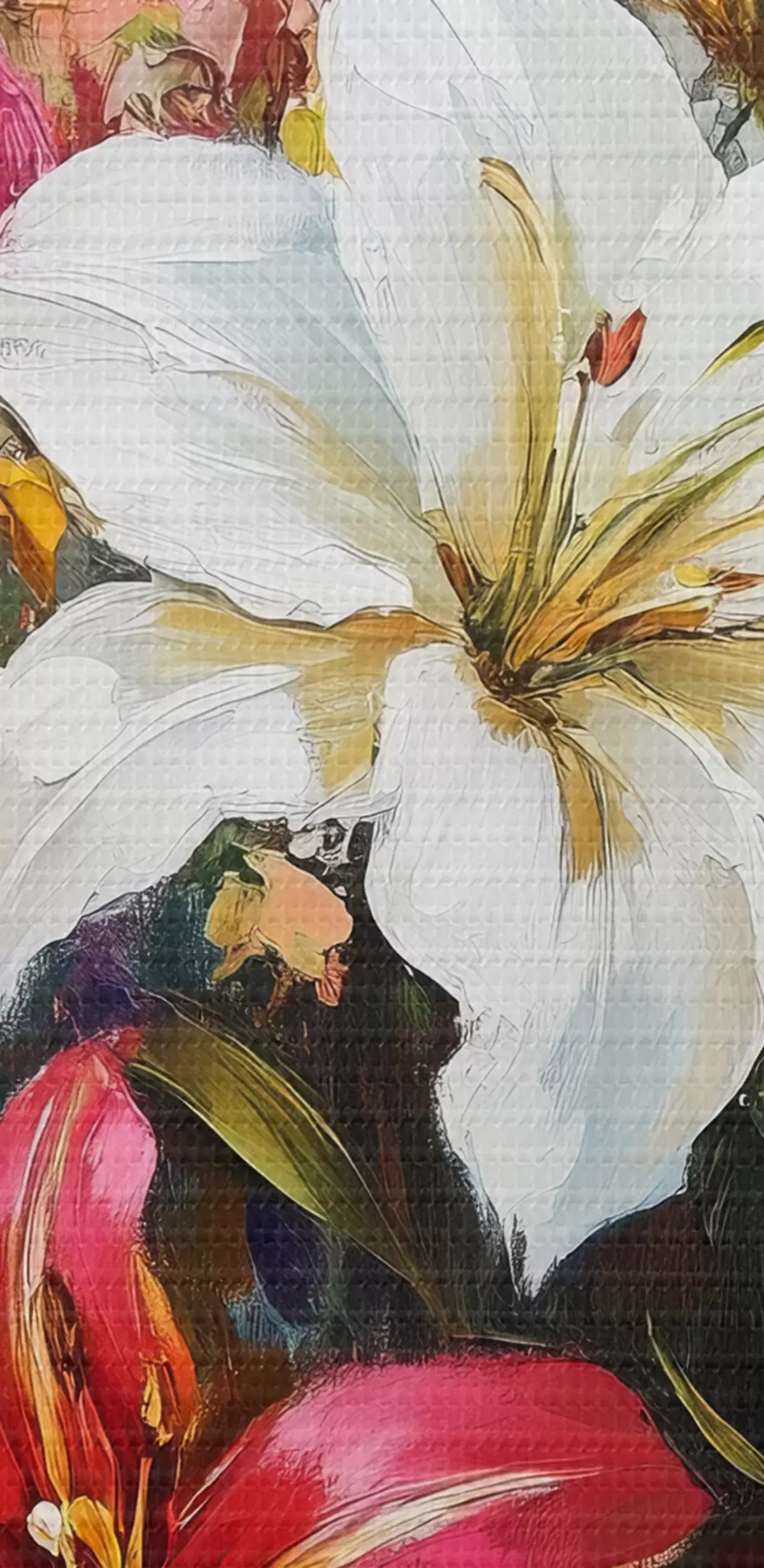 Selle lõuendi peenike niidipunus meenutab professionaalse kunstniku lõuendi pinda.