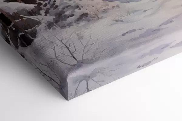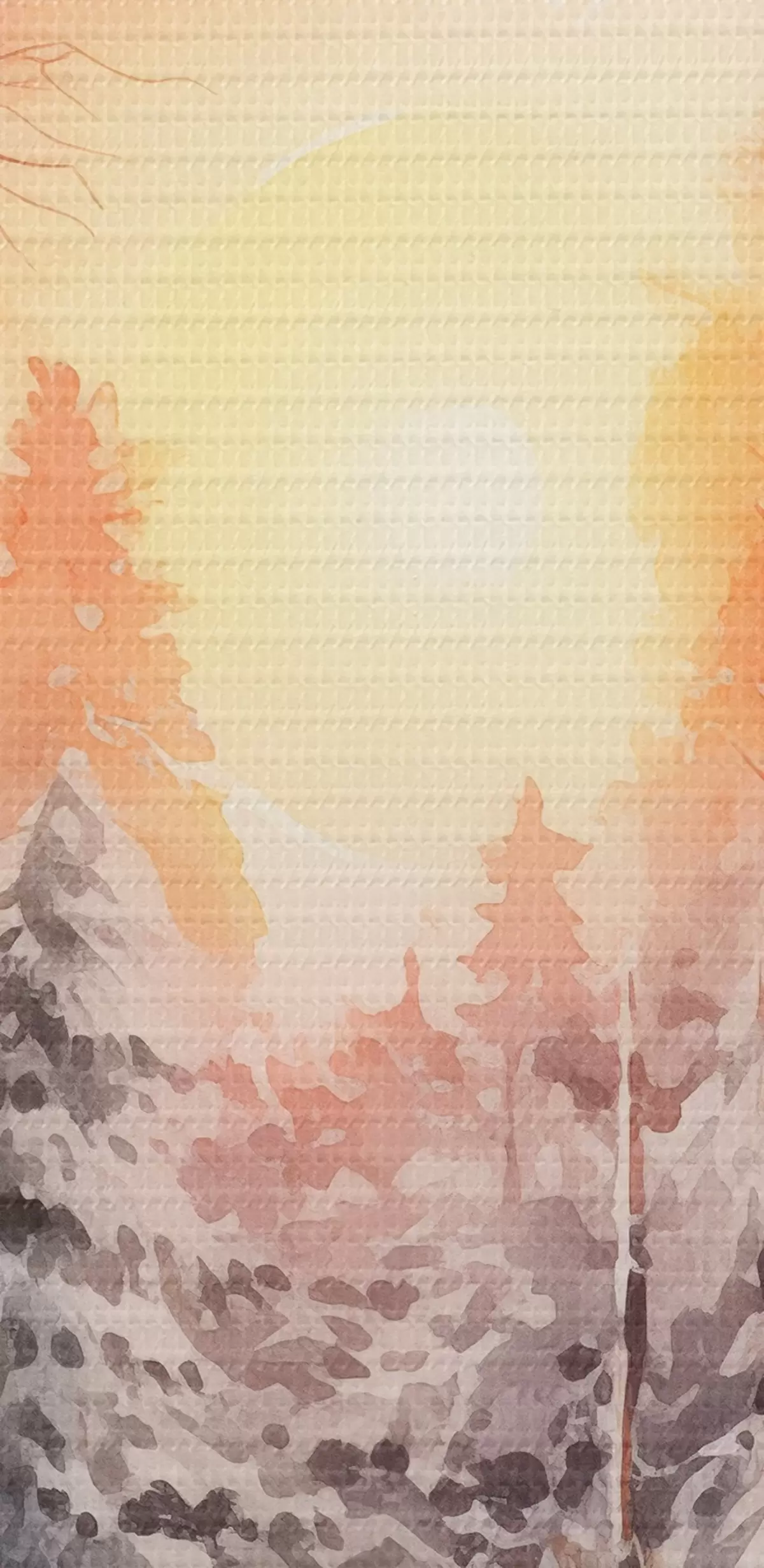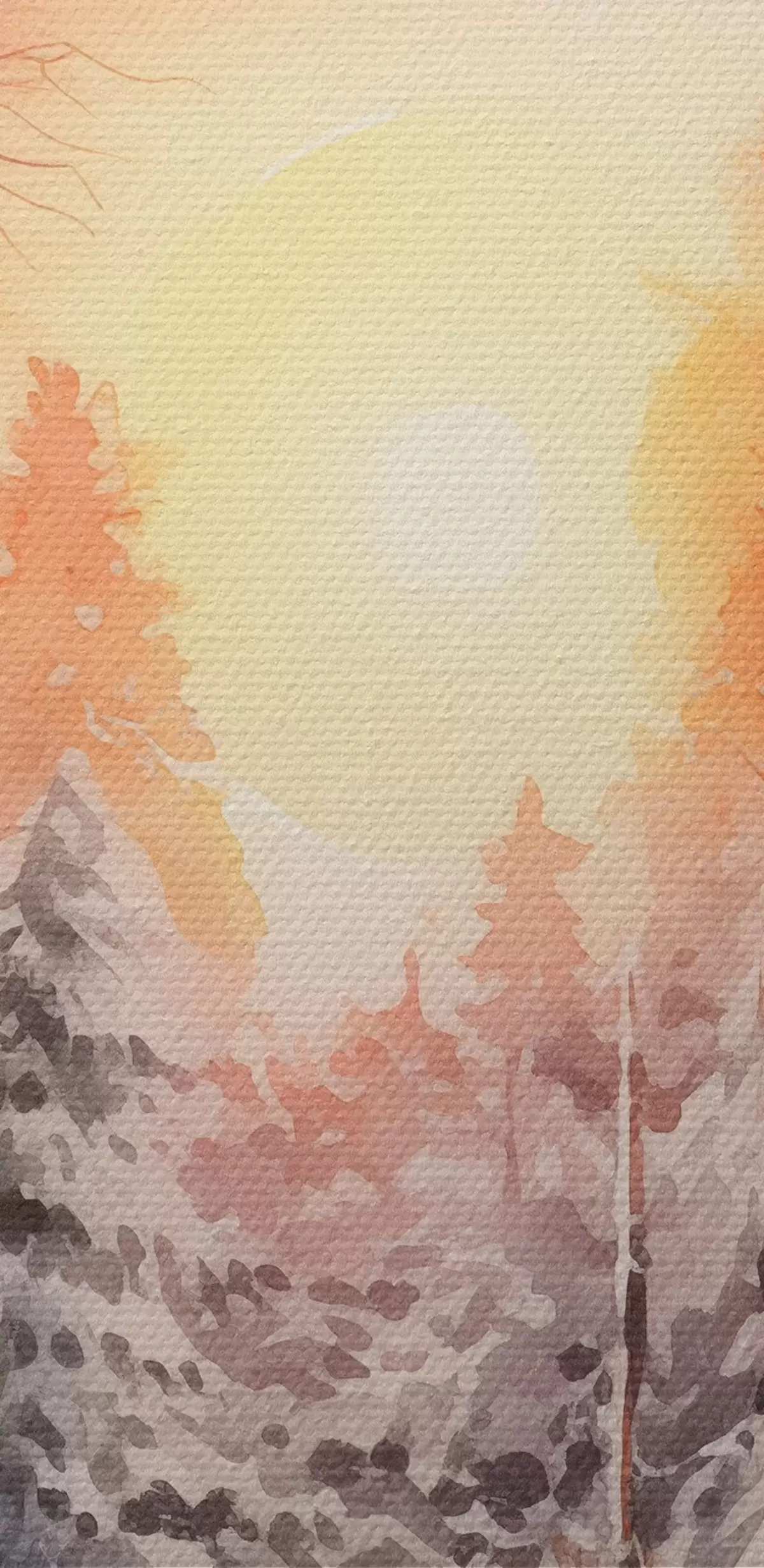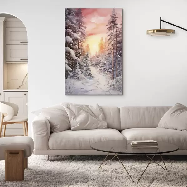 Maalid Ilus talv, akvarellmets, lumine, puud, roosa taevas, päikeseloojang Nr s41641