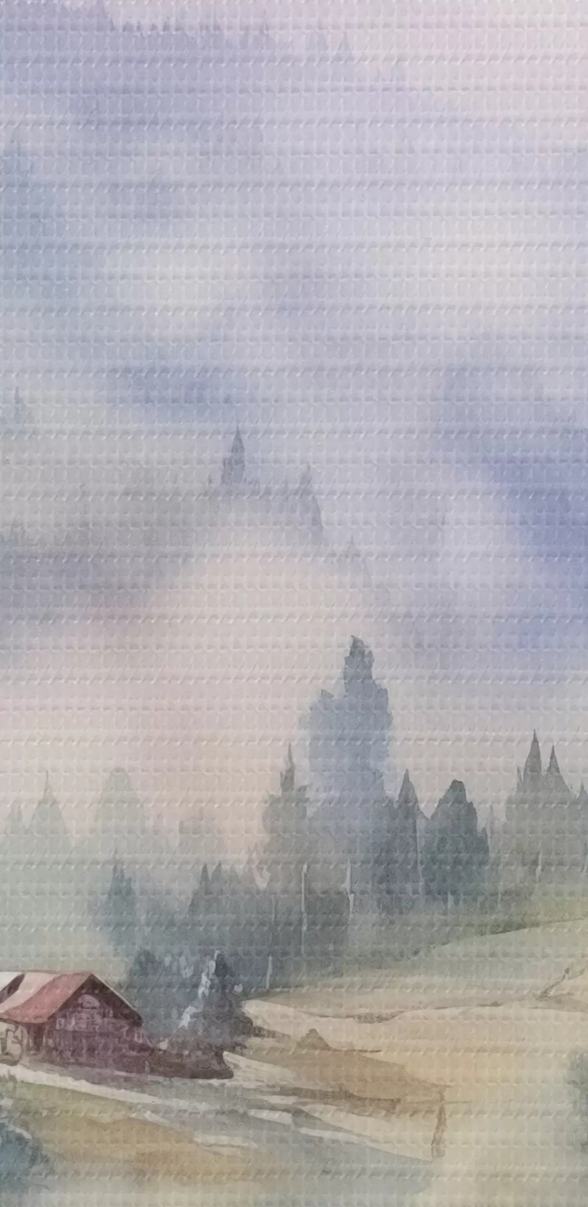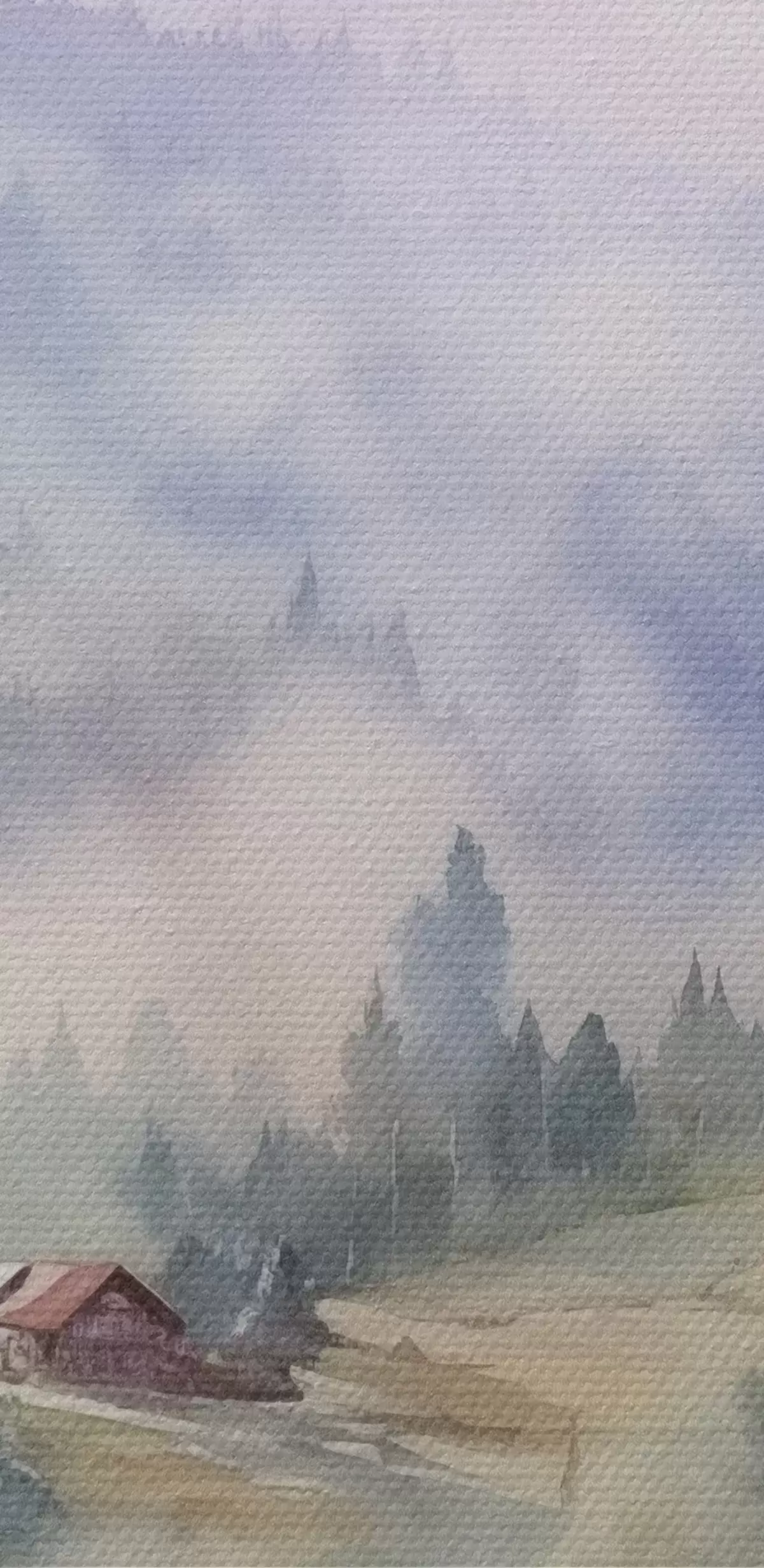 Maalid Ilusad mäed, udune metsamaastik, akvarell, küla Nr s41649
