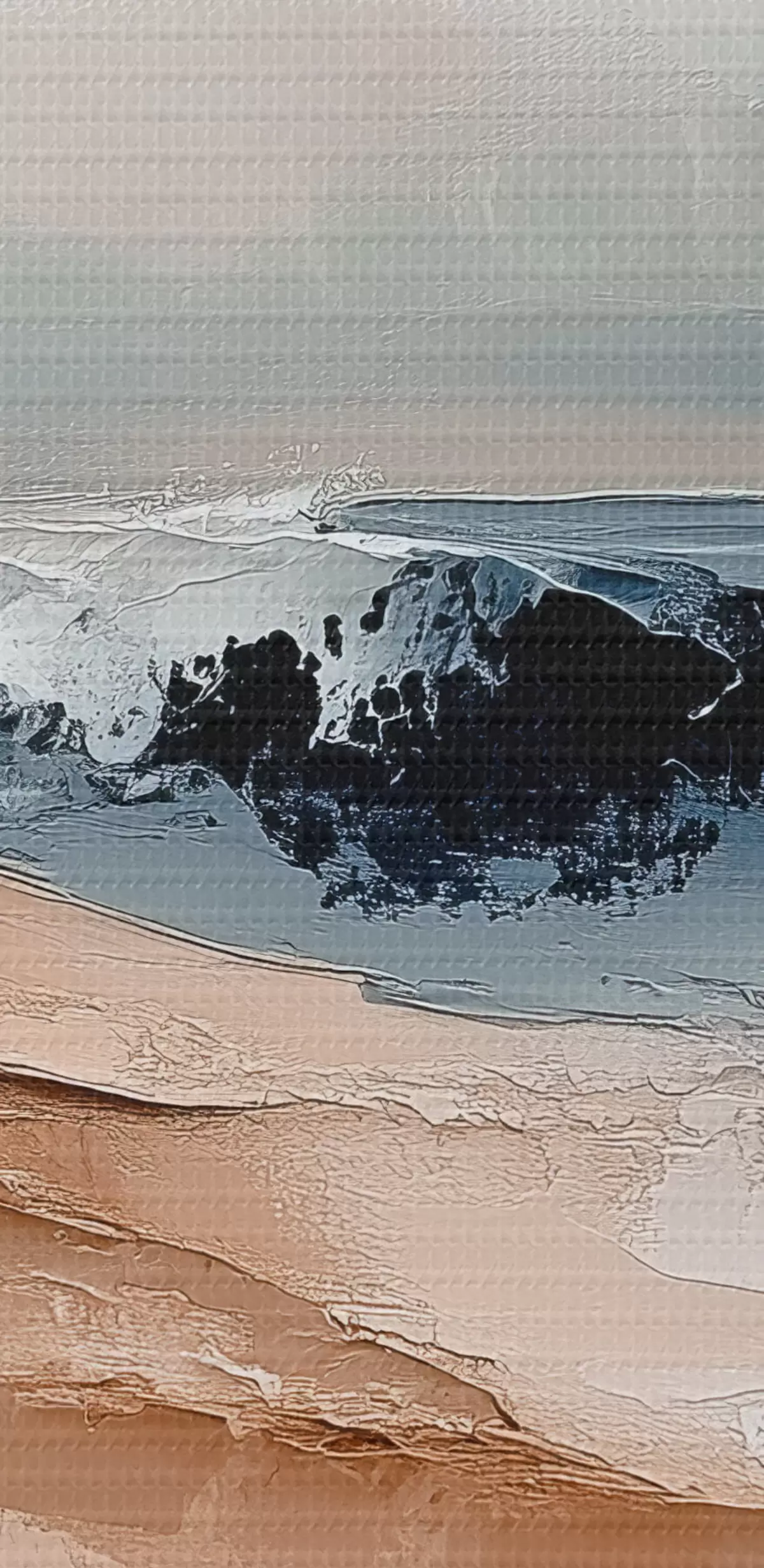 Selle lõuendi peenike niidipunus meenutab professionaalse kunstniku lõuendi pinda.